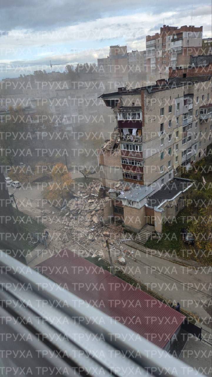 Последствия можно увидеть на фото и видео местных телеграм-каналов – три этажа многоэтажки частично разрушило взрыв.