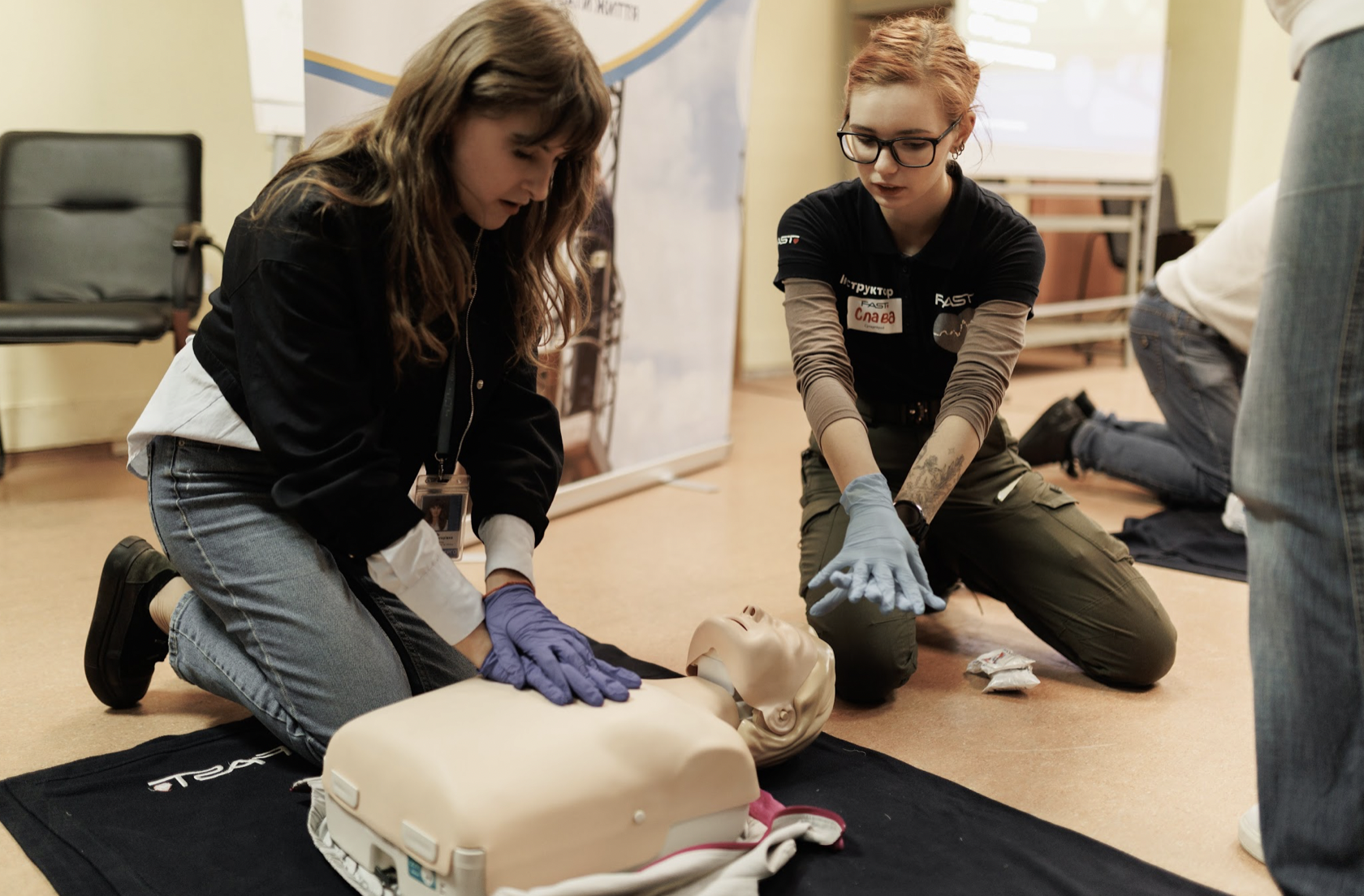 Сотрудники "Укрэнерго" узнали, как останавливать кровотечение с помощью турникета, оценивать состояние раненого, переворачивать пострадавшего в безопасное положение, тампонировать раны и проводить сердечно-легочную реанимацию.