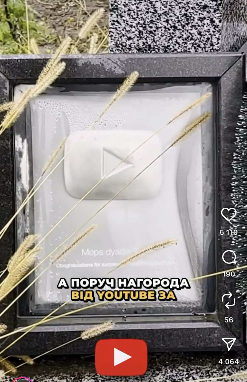 - На его могиле стоит памятник с серебряной кнопкой YouTube и чайкой