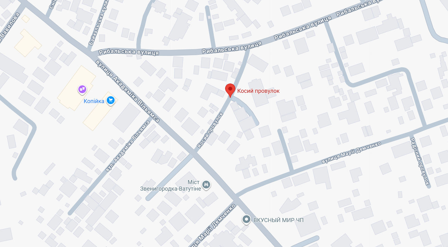 Кстати, свой Косой переулок также есть в Полтаве. Он соединяет улицы Решетиловскую и Шевченко.