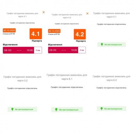 Во всех регионах Украины введены графики отключения света. Почасовые отключения действуют с 08:00 до 19:00 – от 1 до 2 очередей. Ограничение мощности – с 08:00 до 19:00 для промышленных потребителей.