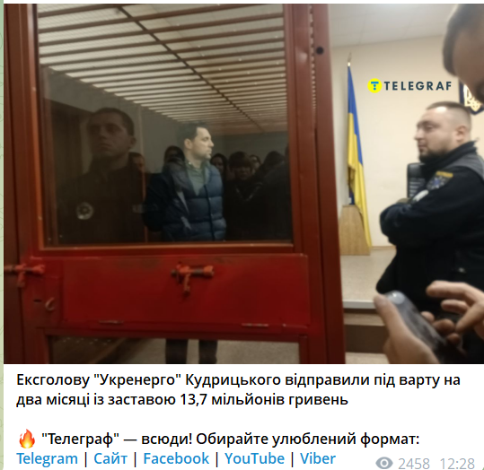Напомним, 29 октября судья Кристина Константинова (известная тем, что ранее отправляла под домашний арест активиста Романа Ратушного) определила для Владимира Кудрицкого меру пресечения — содержание под стражей с возможностью внесения залога в 13,7 млн грн.