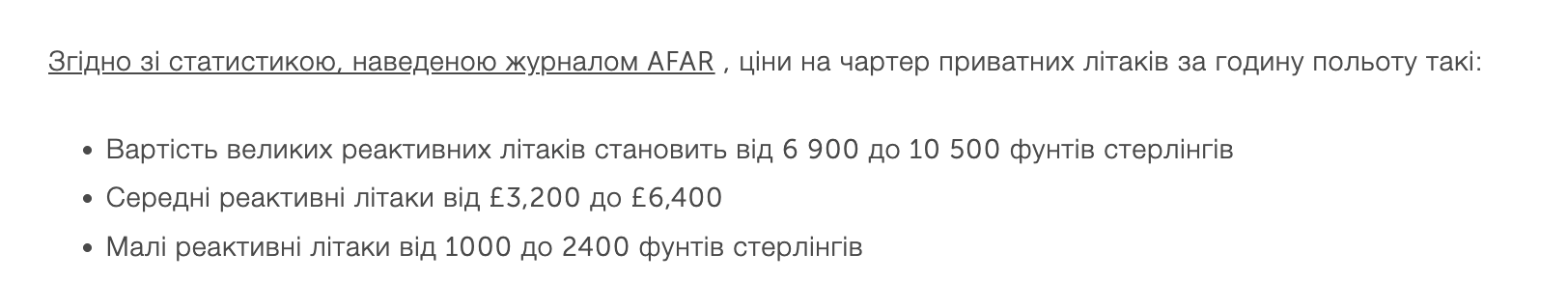 Еще в 2023 году цены на чартер частных самолетов компании VistaJet за час полета были следующие: