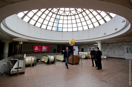 Технология строительства поражает даже сейчас. Пришлось построить огромный железобетонный цилиндрический вестибюль на поверхности, а затем опустить его на глубину 50 метров. Конструкция без дна весом 3 тысячи тонн постепенно углублялась вниз, а рабочие вынимали из-под нее землю.