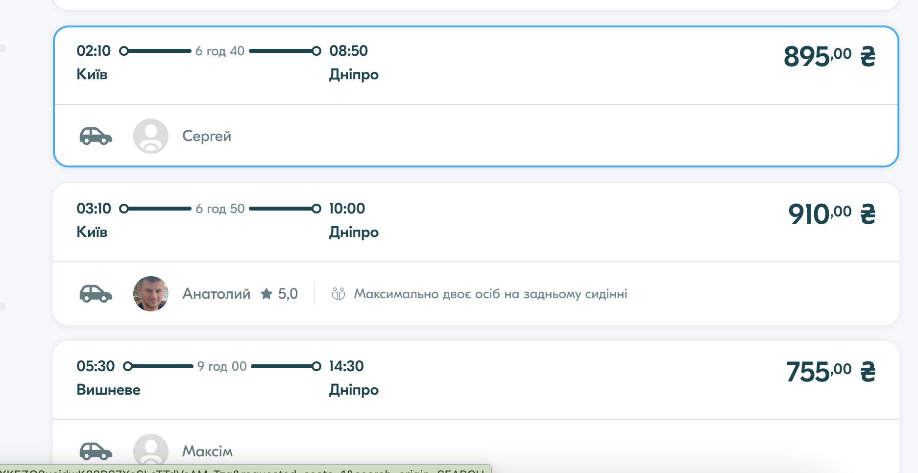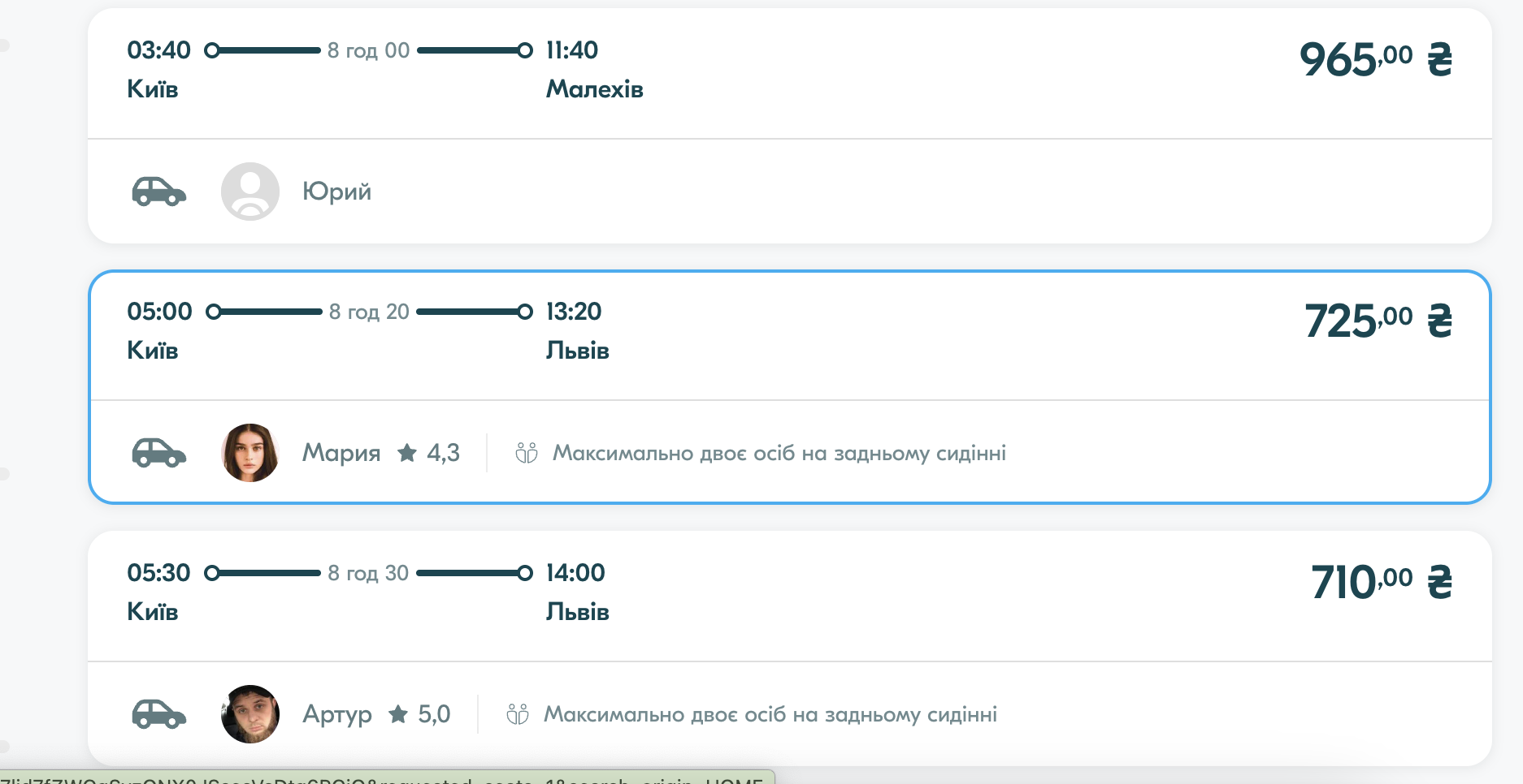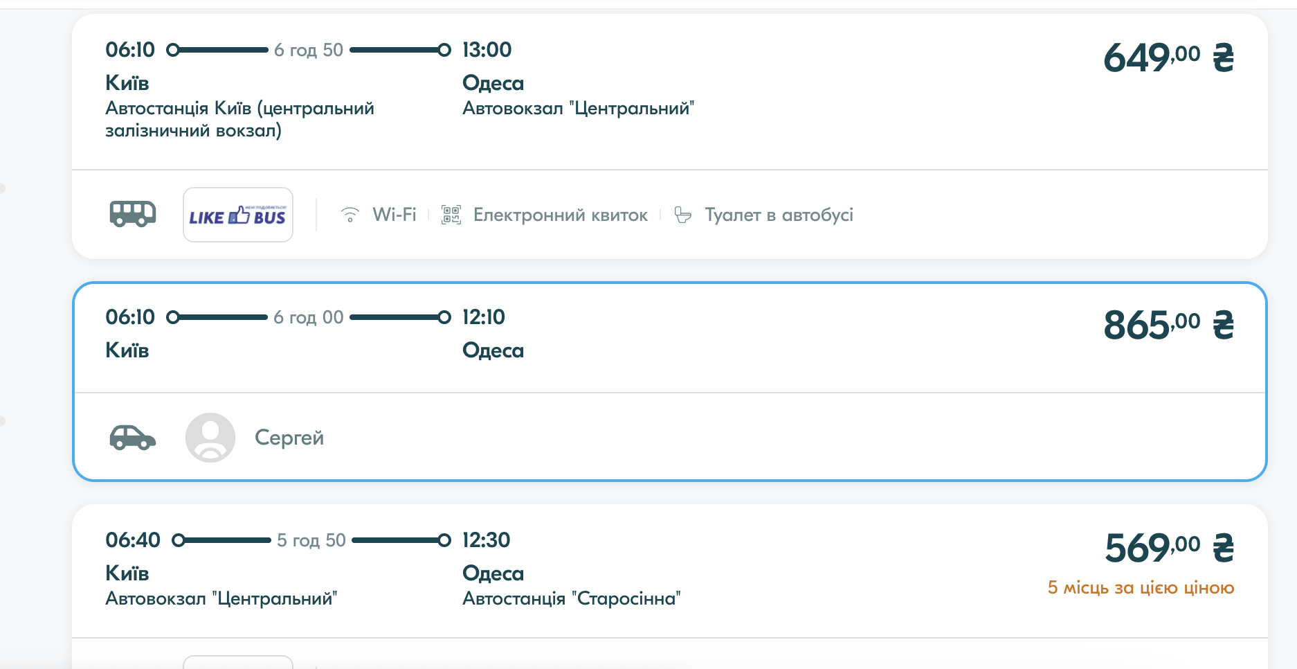 Кроме автобуса можно воспользоваться услугой BlaBlaCar. Стоимость такой поездки из Киева следующая: