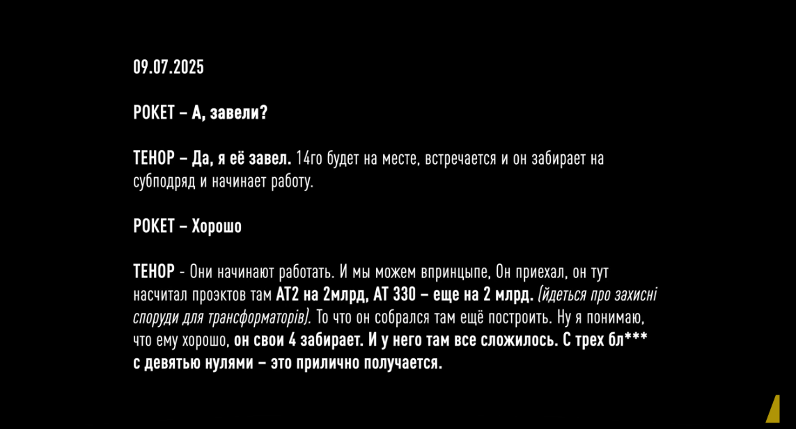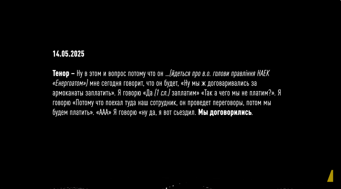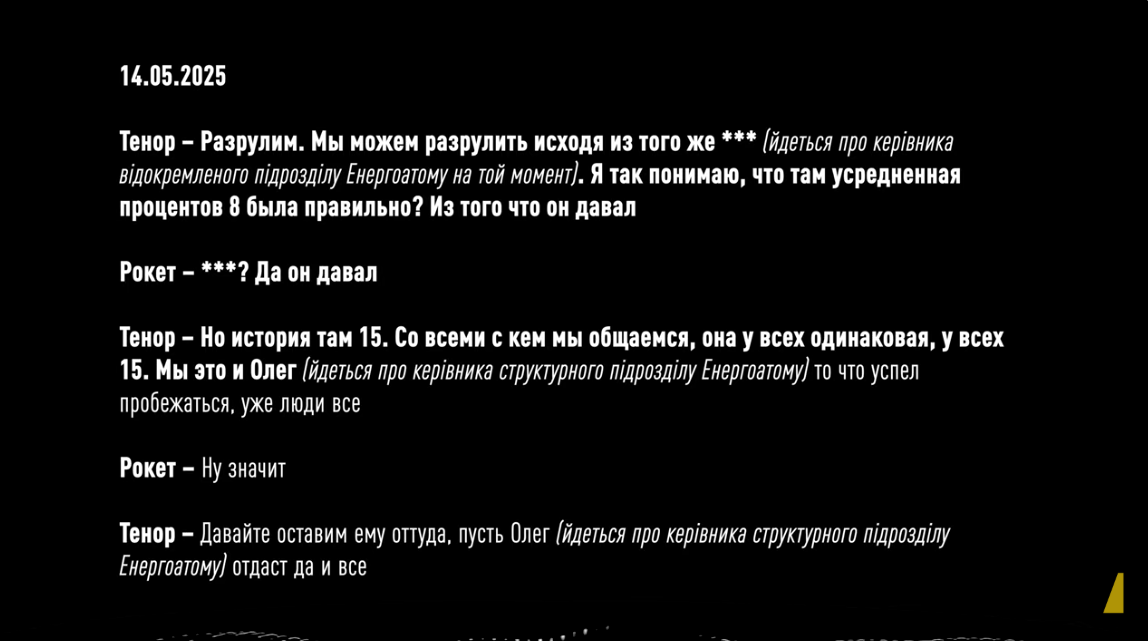 На записях фигурирует позывной "Карлсон", которым по предварительным данным называют бизнесмена Тимура Миндича, совладельца "Квартала 95". В прошлые годы Миндича связывали с бизнес-группой Игоря Коломойского и неформальным влиянием на медийные активы. 10 ноября детективы НАБУ пришли с обысками в его квартиру в Киеве, однако за несколько часов до этого бизнесмен покинул территорию Украины.