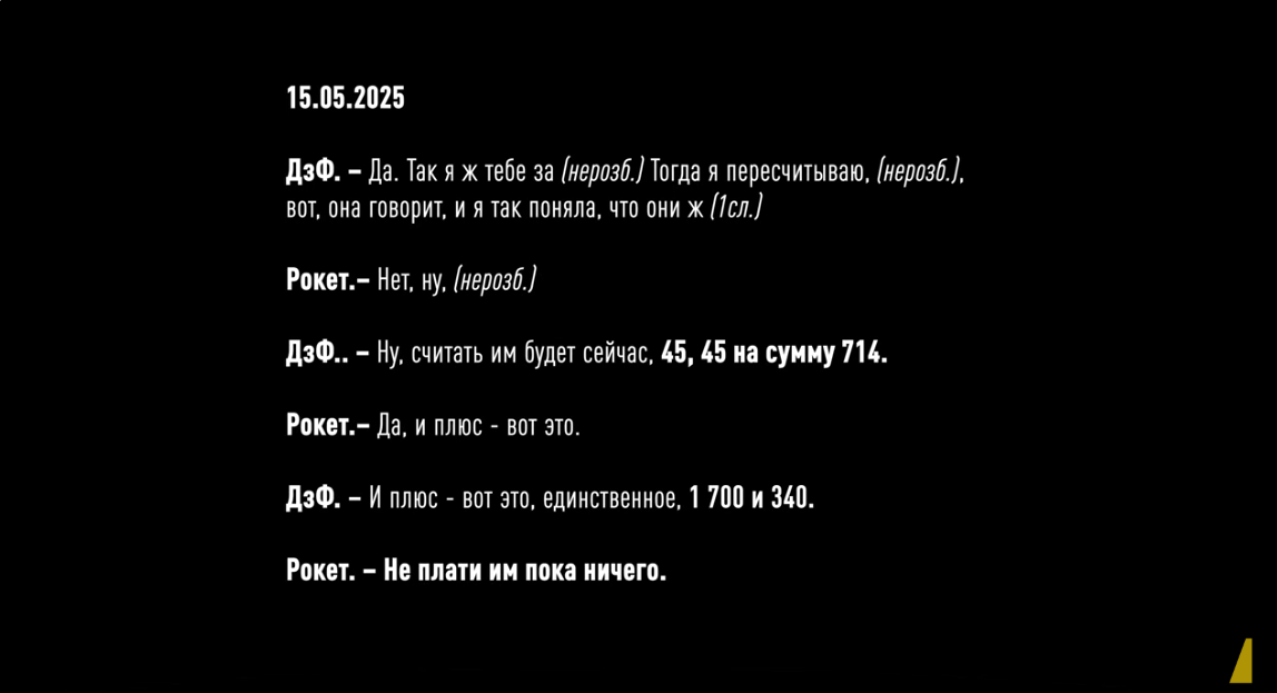 В расшифровках фигурируют несколько дат и фрагментов, иллюстрирующих давление на подрядчиков, обсуждение откатов и влияние кадровых решений.