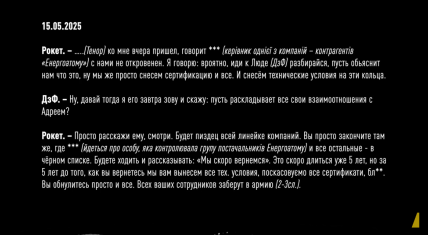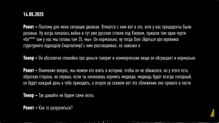 Подробные разговоры Рокета, Тенора, Профессора и Карлсона, которые по версии следствия, контролировали ключевые процессы в "Энергоатоме".