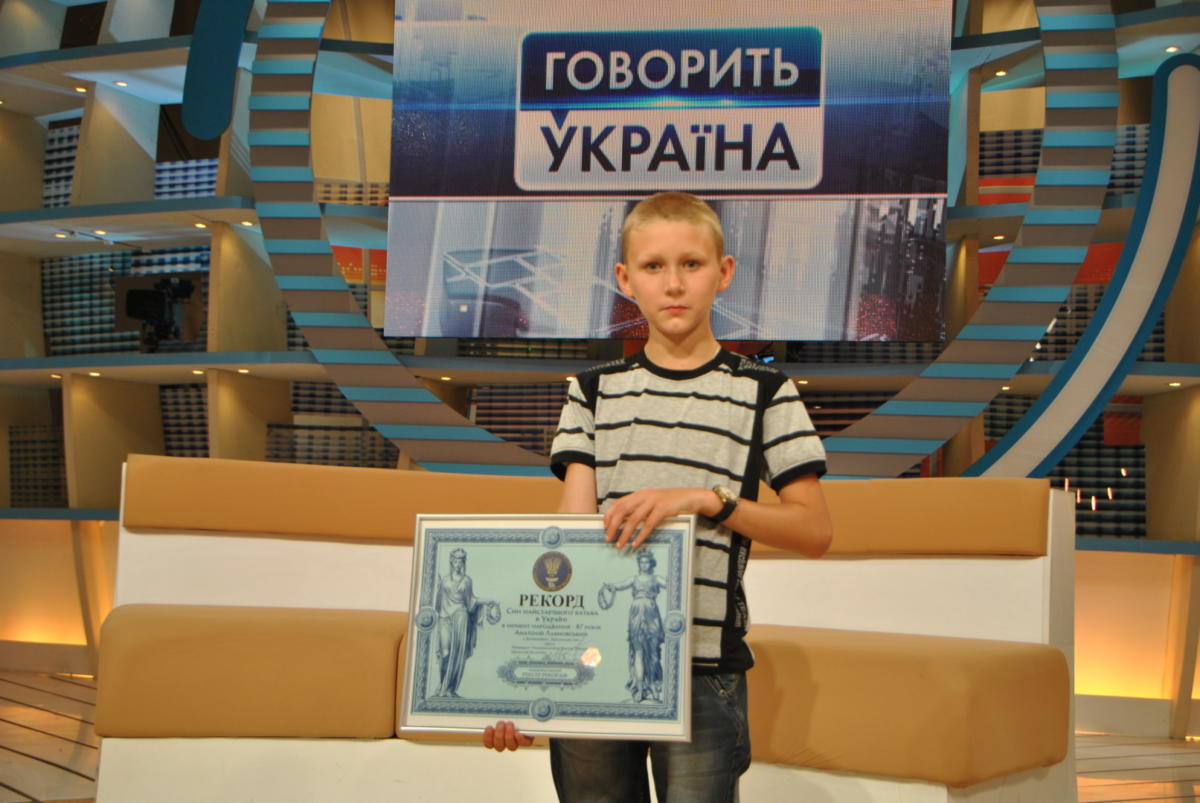 Во время передачи представительница Национального реестра рекордов Украины вручила мальчику сертификат "Сын самого старого отца в Украине", также он получил сертификат рекорда вместо своего отца — "Самый старший человек, который стал отцом".