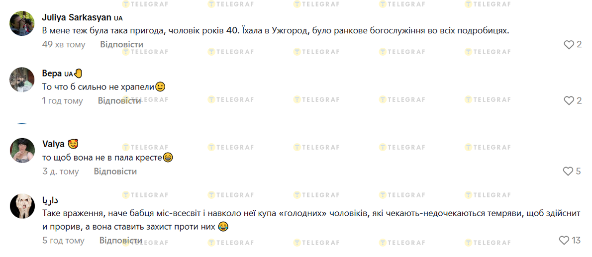 Сцена знакома многим пассажирам украинских железных дорог: в плацкартном вагоне люди ложатся спать. Однако путешественник Дмитрий увидел странную картину – пожилая женщина на верхней полке старательно крестит вагон. Потом людей вокруг. Потом снова вагон.