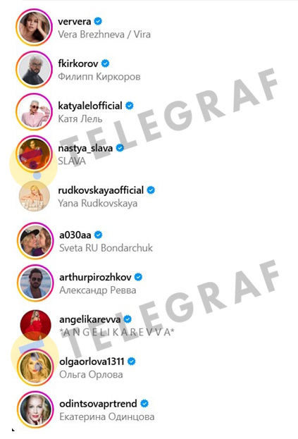 Как нам удалось выяснить, среди подписчиков жены Миндича, известные персоны и знаменитости из России. Причем среди них есть и откровенные путинисты, которые поддерживают войну в Украине и убийства украинцев.