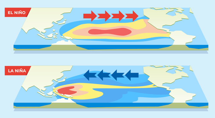 Важную роль в определении теплой или холодной зимы играет Южное колебание (ENSO) — периодические изменения температуры поверхности воды в тропическом Тихом океане. Его теплая фаза – Эль-Ниньо, а холодная – Ла-Нинья. Эль-Ниньо обычно способствует повышению температуры зимой, тогда как Ла-Нинья — холодным и снежным зимам. По данным NOAA, осенью и зимой 2025/2026 ожидается Ла-Нинья слабой интенсивности, которая, вероятно, в январе-марте перейдет в нейтральную фазу в начале 2026 г.