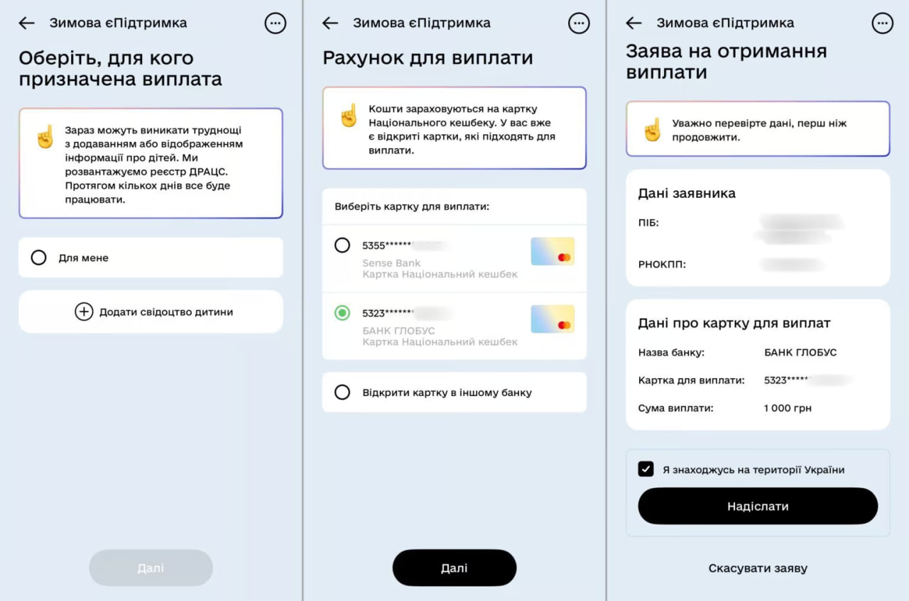 Как подать заявку на 1000 гривен в программе "Зимняя поддержка"
