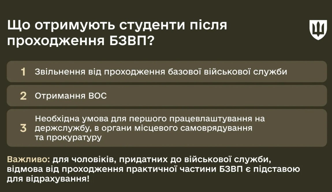 - При этом все вузы независимо от направления должны с этого учебного года ввести базовую общевойсковую подготовку (БОВП, чаще используется украинская форма БЗВП — Ред.). Как это реализовано на практике?
