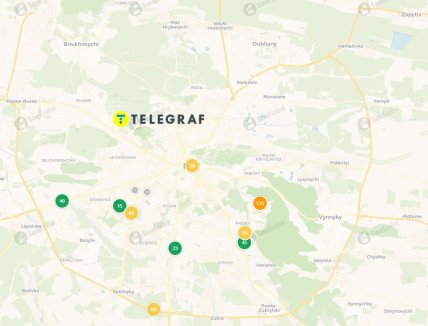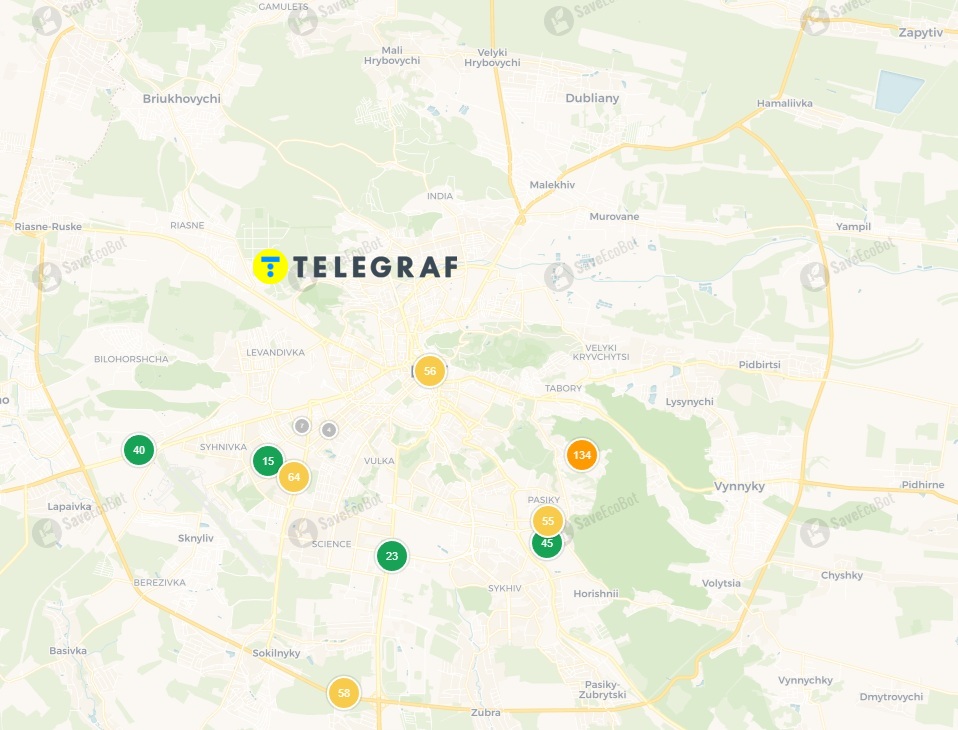 Во Львове уровень загрязнения варьируется от хорошего до вредного для чувствительных групп. Наиболее угрожающую ситуацию фиксирует датчик на улице Латвийской — система показывает 134 балла (вредное для чувствительных лиц), что на границе с вредными показателями для всех.