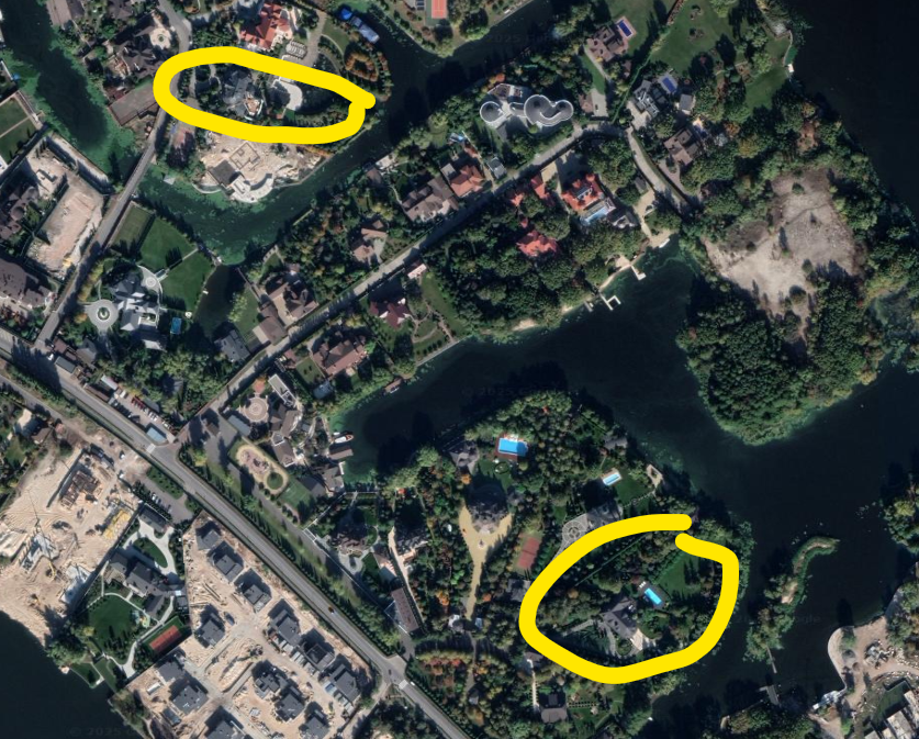 Речь идет о доме на той же улице, на которой находится первое имение бывшего зама Азарова. Рядом со зданием – большой бассейн, также есть собственный выход к воде (а на снимках из космоса видна пришвартованная яхта или катер).