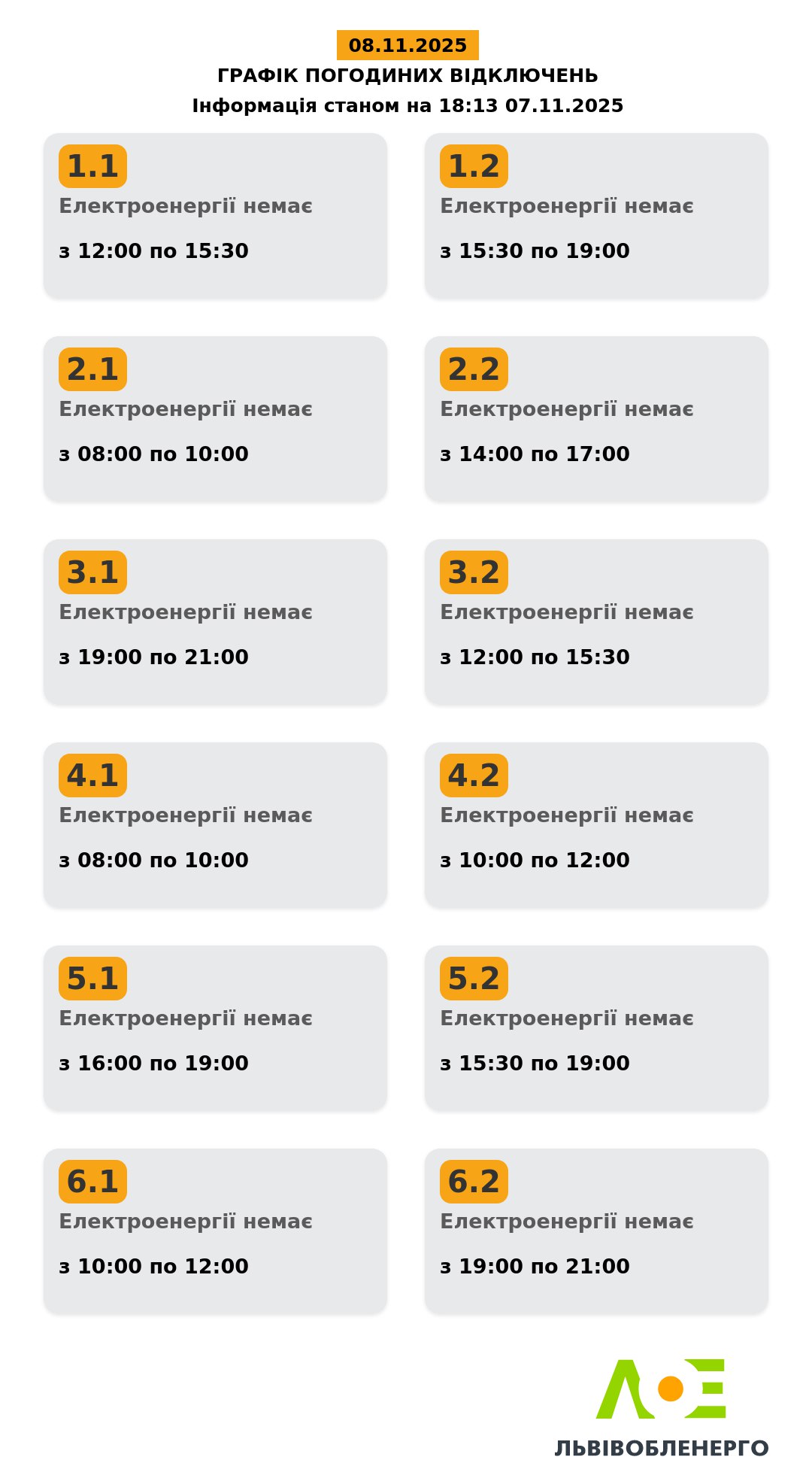 Во Львове и области после российской атаки ограничения электроэнергии тоже стали более продолжительными. В четверг, 20 ноября, отключения будут действовать в течение суток и будут продолжаться до 14 часов. Хотя еще 8 ноября ограничения были от 3-х часов в сутки, что хорошо заметно по приведенным ниже графикам.