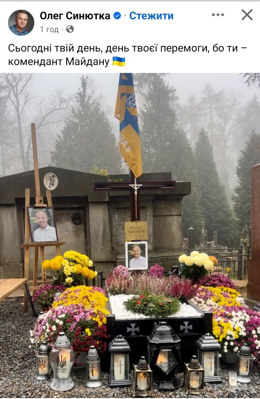 В День Достоинства и Свободы глава Львовской облгосадминистрации Олег Синютка опубликовал в Facebook свежее фото могилы Андрея Парубия.