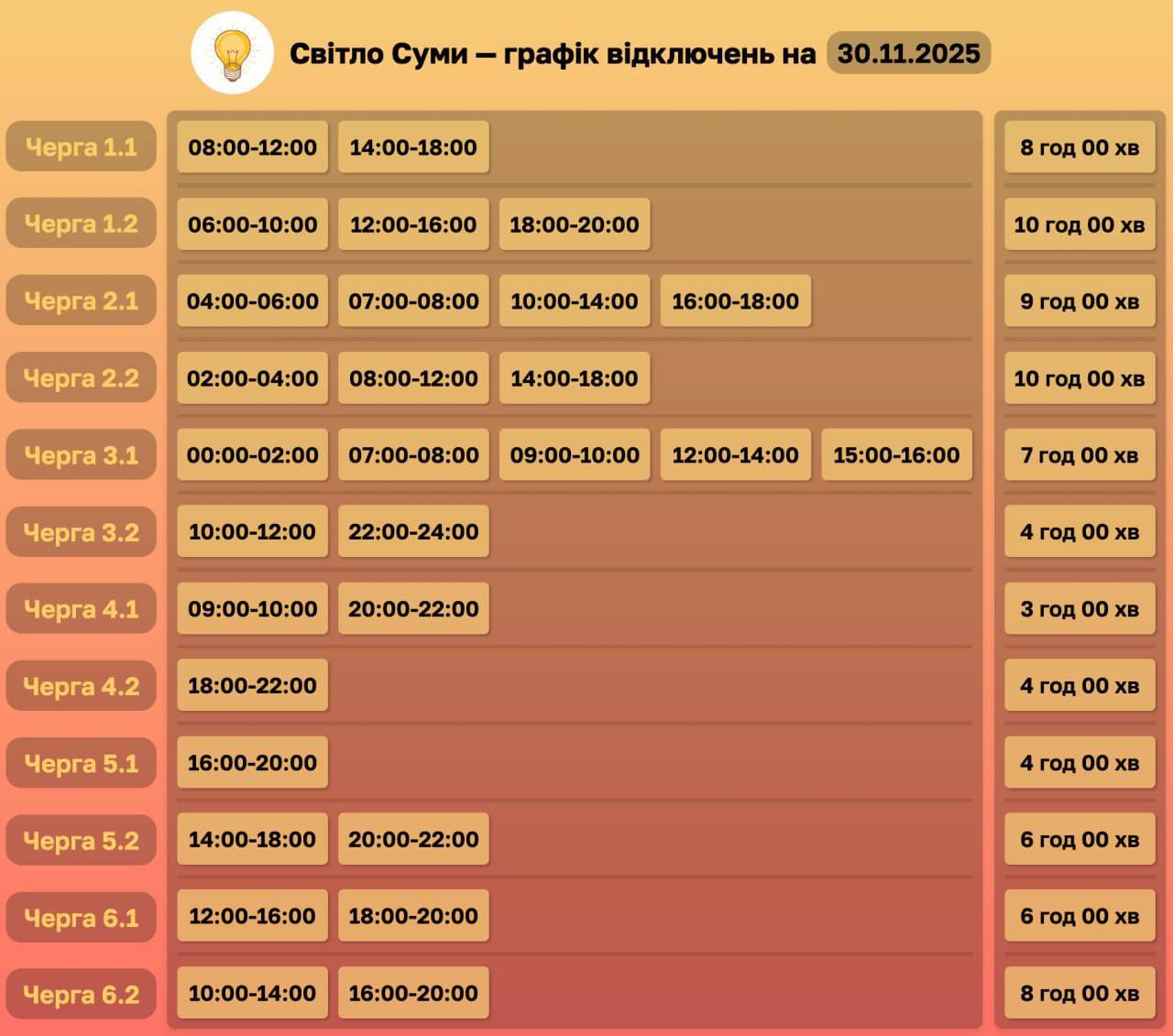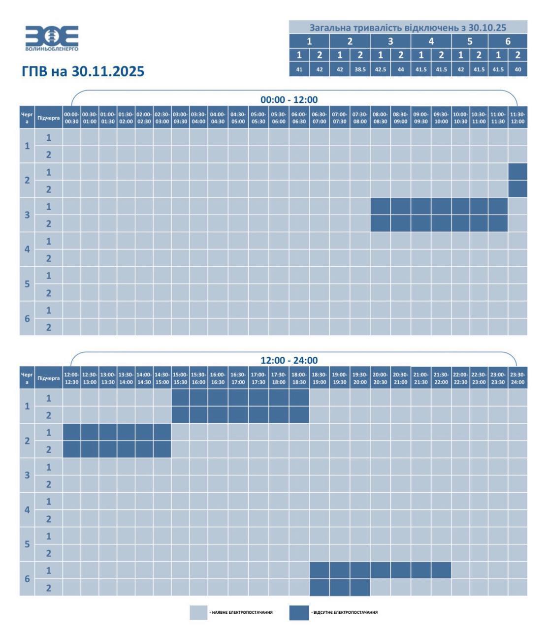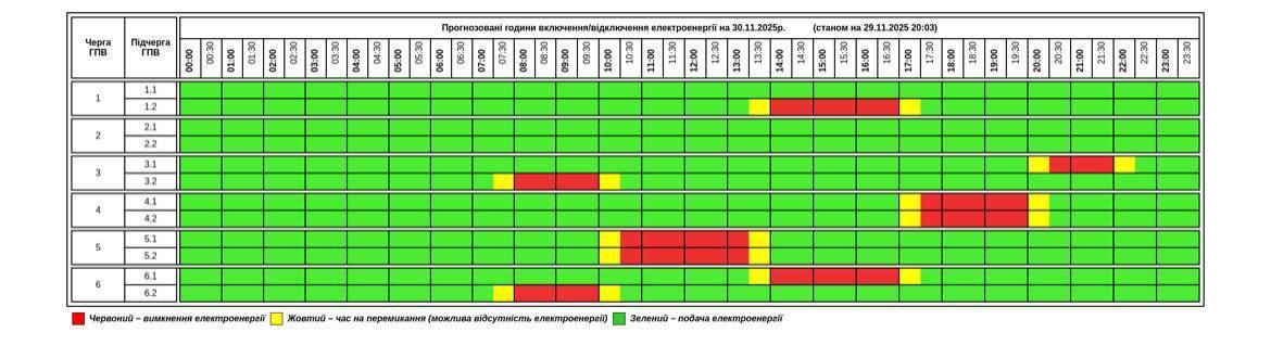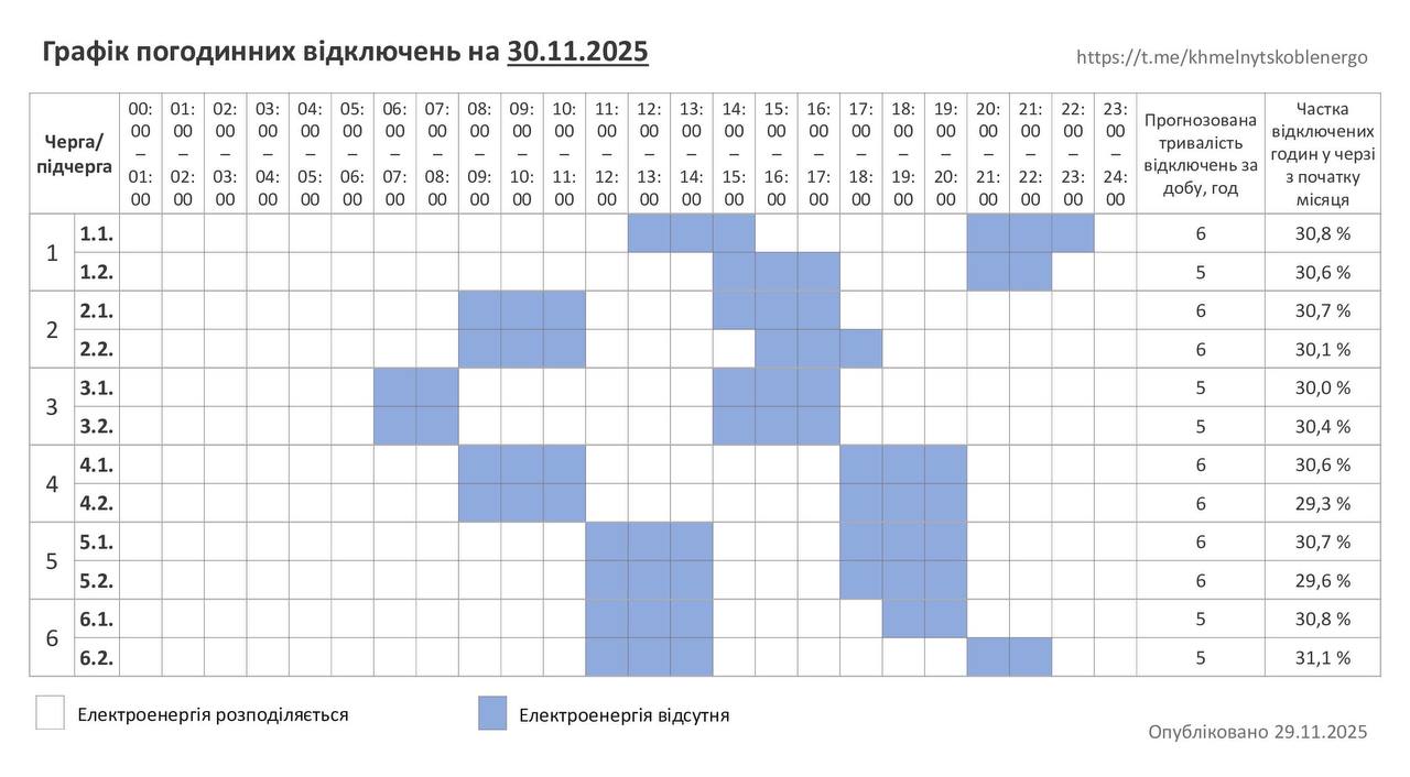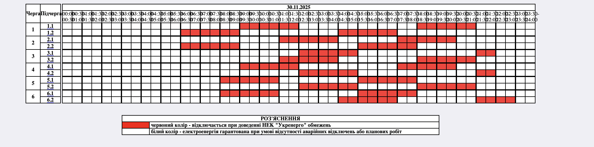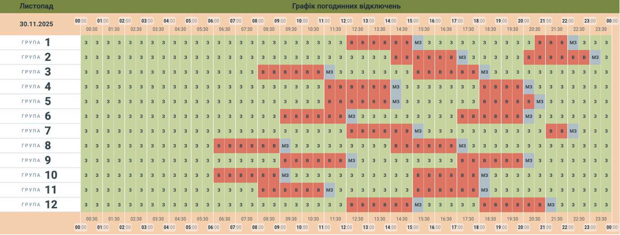 Украинцы уже несколько недель вынуждены жить в условиях постоянных отключений света из-за российских атак на энергетику. В воскресенье, 30 ноября, в течение суток в стране будет действовать сразу от 0,5 до 3 очередей отключения, сообщает "Укрэнерго"