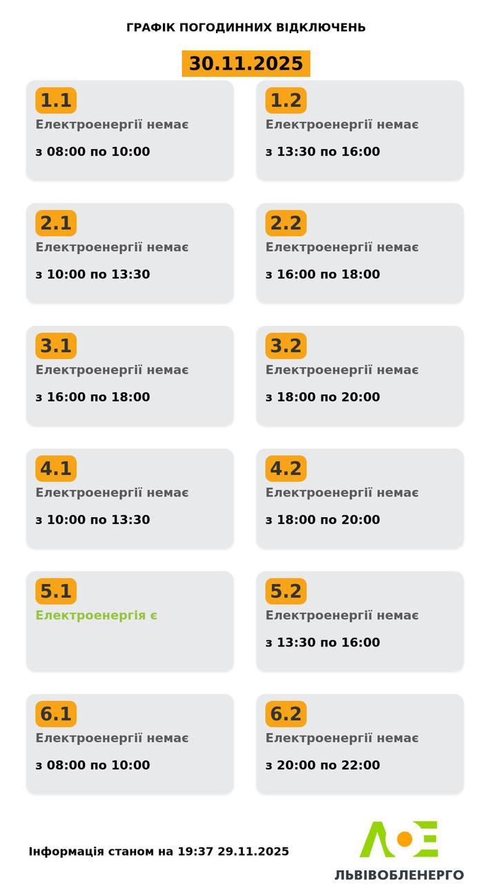 Как узнать свою очередь отключения в каждой области Украины, читайте в статье на "Телеграфе" по этой ссылке.