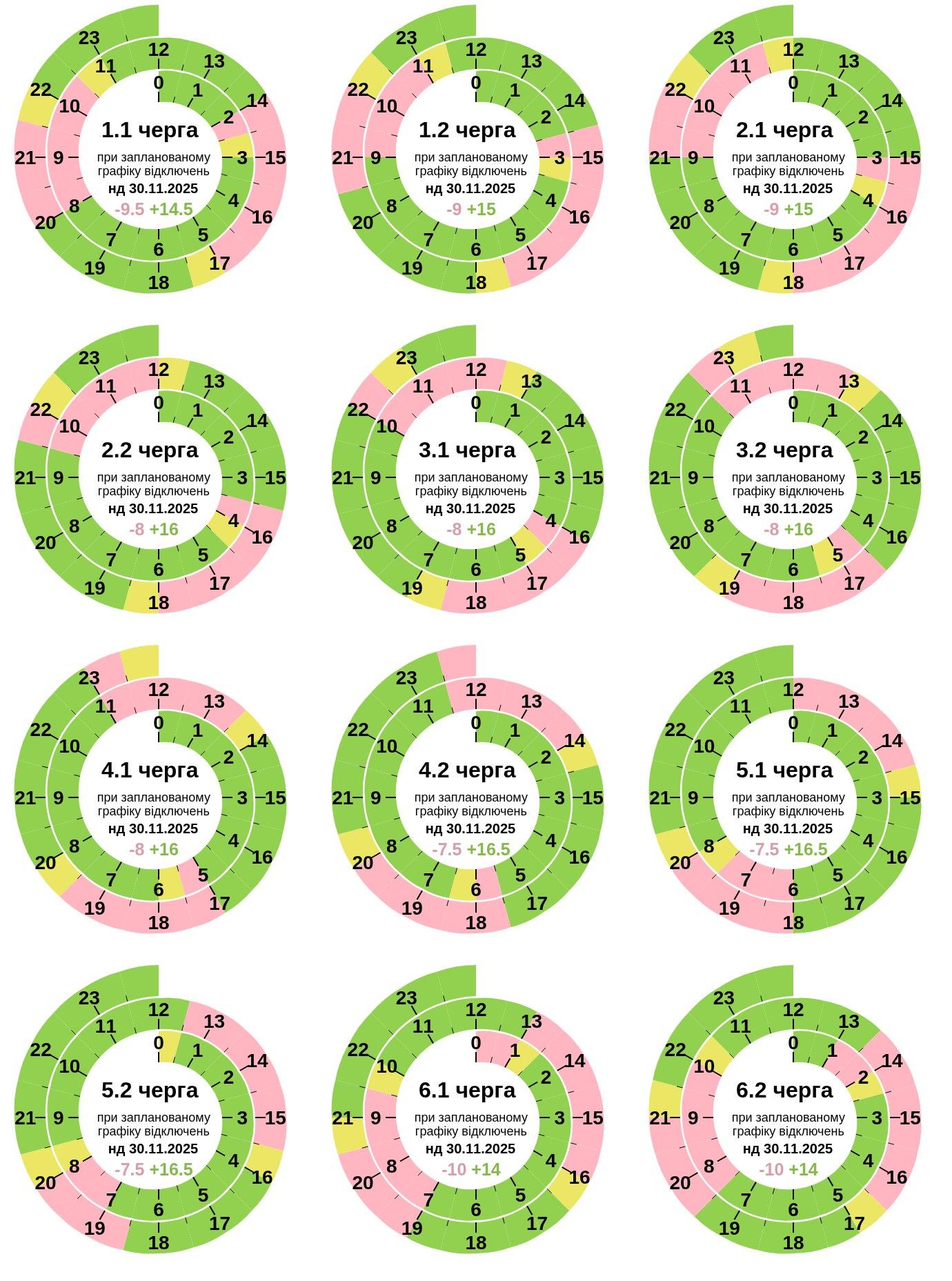 - 1.1: 00:00 – 00:30; 06:00 – 11:00; 14:30 – 18:30;