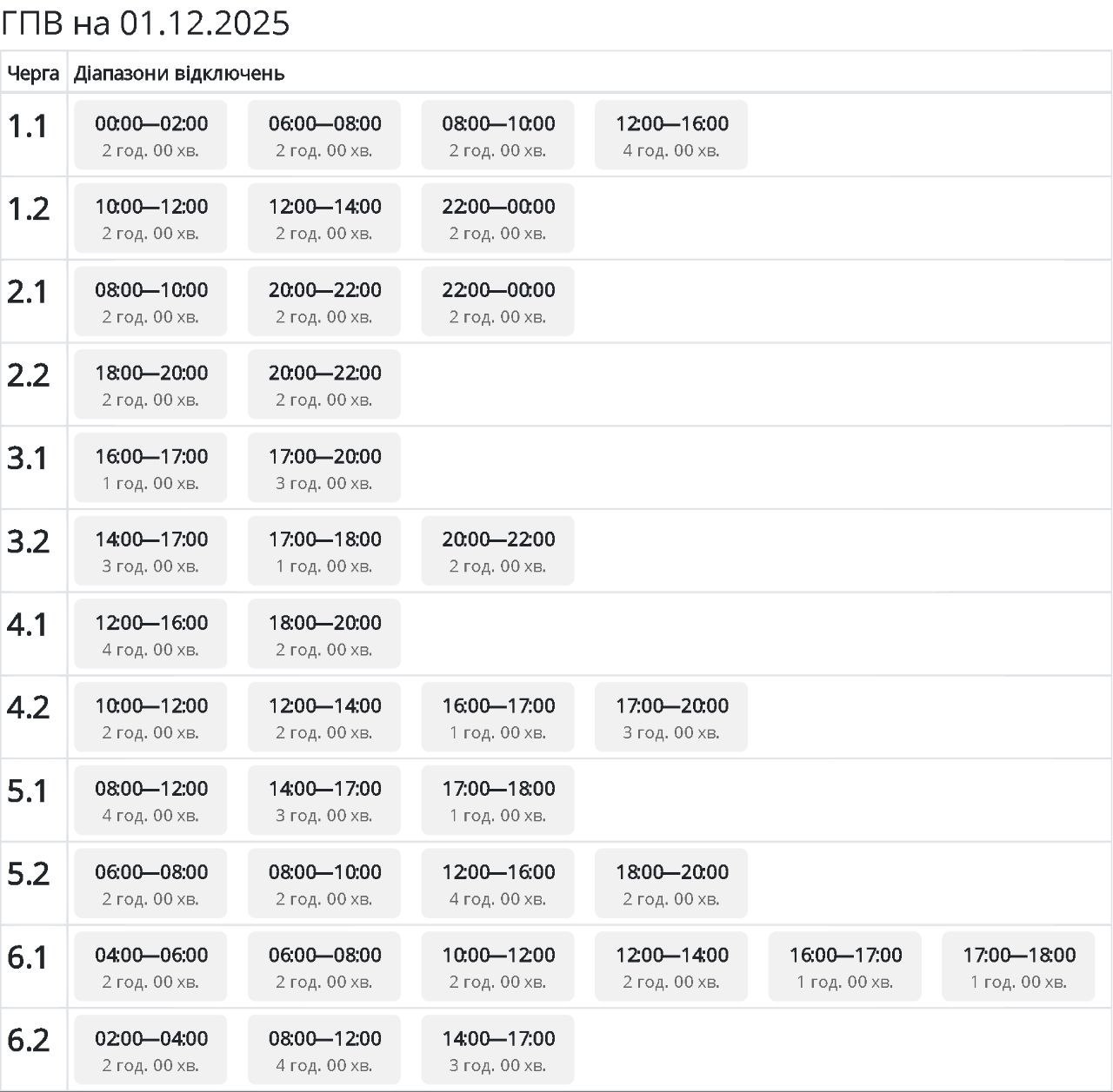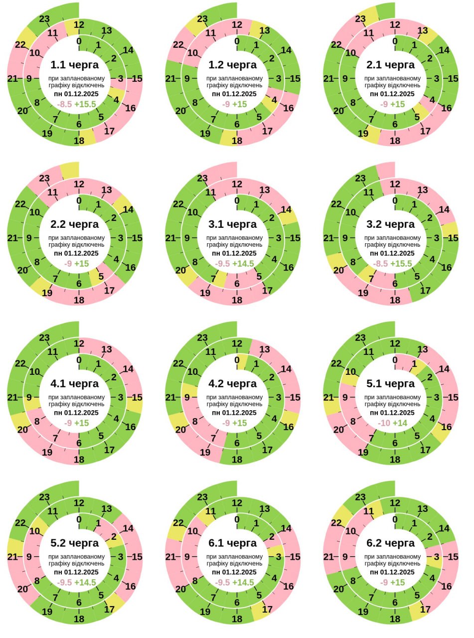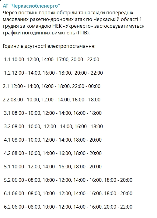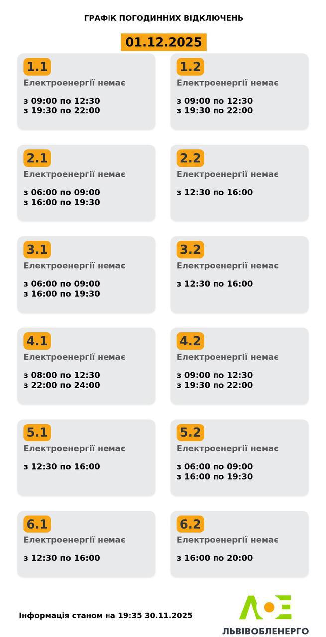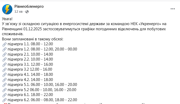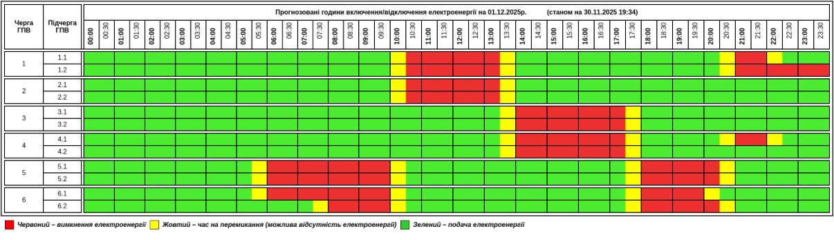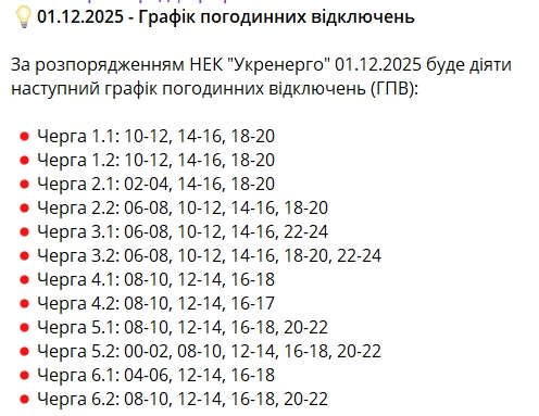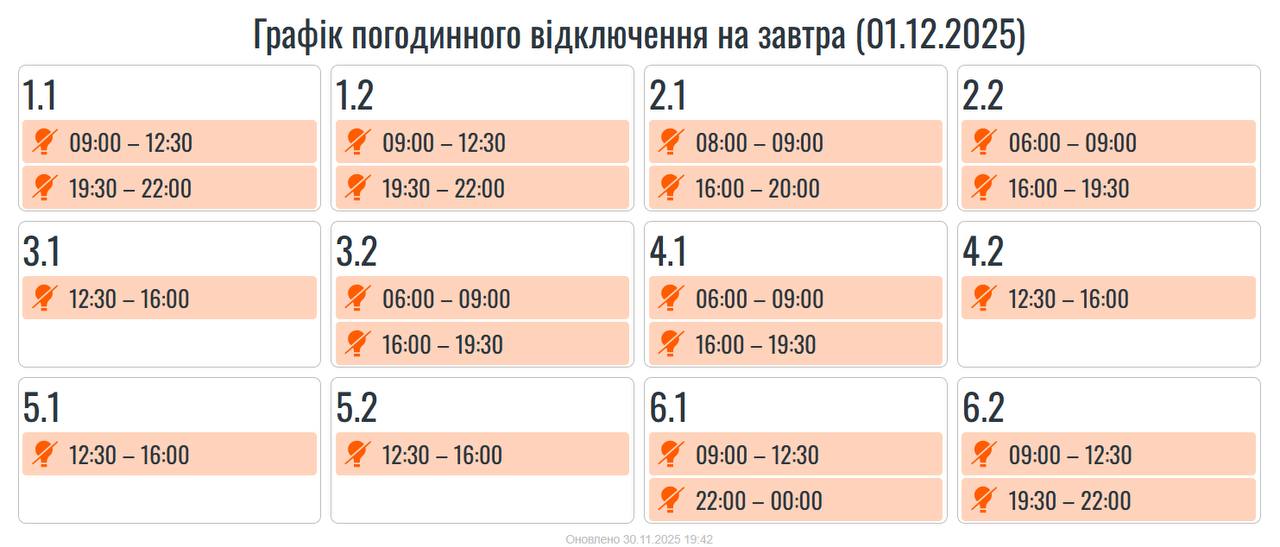 Длительные отключения, но не для всех. Какие графики действуют 1 декабря по регионам Украины