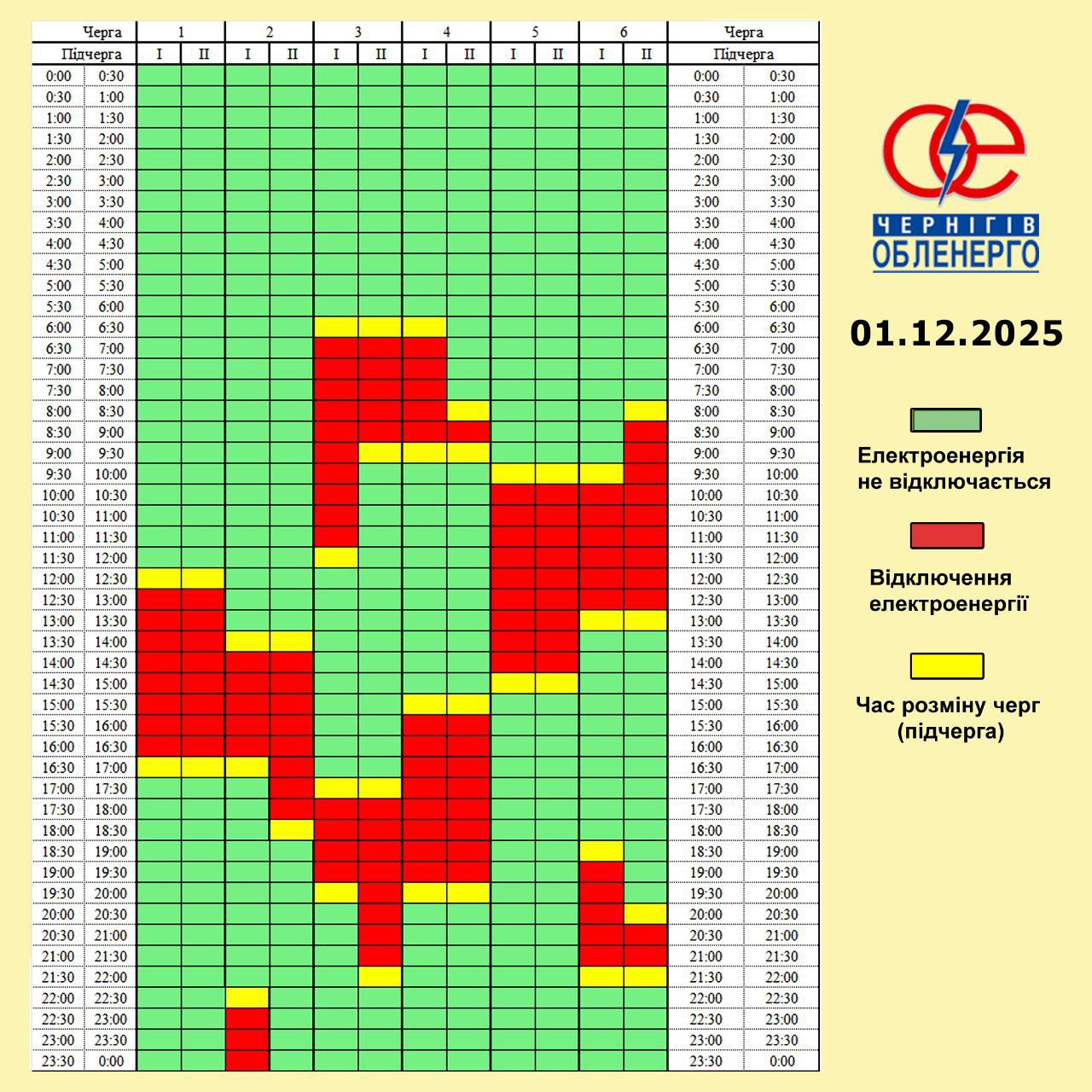 Из-за энергетического террора России украинцы вынуждены жить в условиях постоянных отключений света. Поэтому в понедельник, 1 декабря, в течение всего дня в стране будет задействовано сразу от 0,5 до 3 очередей отключения, сообщает "Укрэнерго".