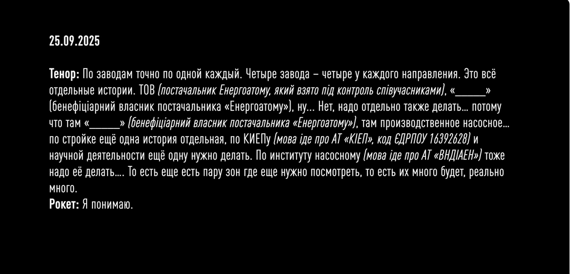 "Рокет" – это Игорь Миронюк, бывший советник бывшего министра энергетики Германа Галущенко. "Тенор" – Дмитрий Басов, исполнительный директор по физической защите и безопасности "Энергоатома". А КИЭП – компания, которая за всю свою историю именно в 2025-м получила от "Энергоатома" самые большие подряды. Только в 2025 году это около 187,2 млн грн.