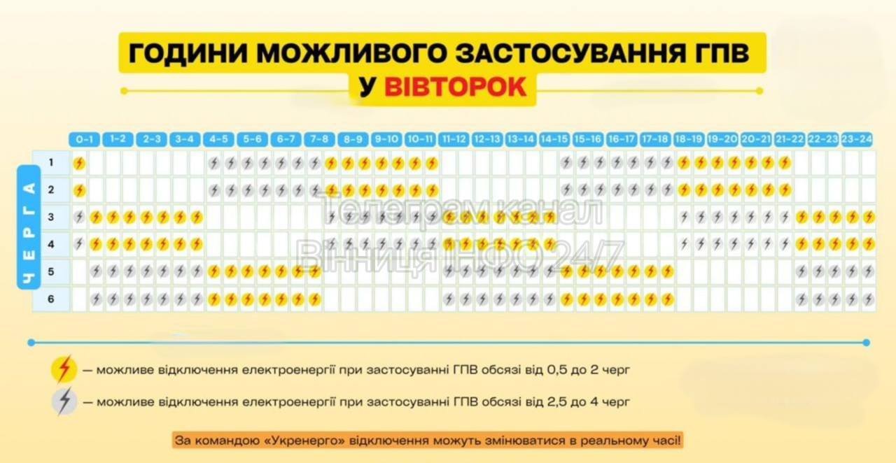 Графики отключений в Винницкой области 2 декабря
