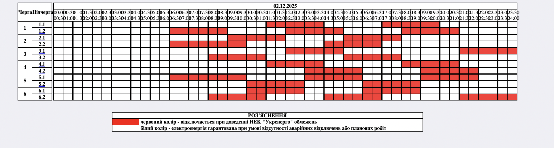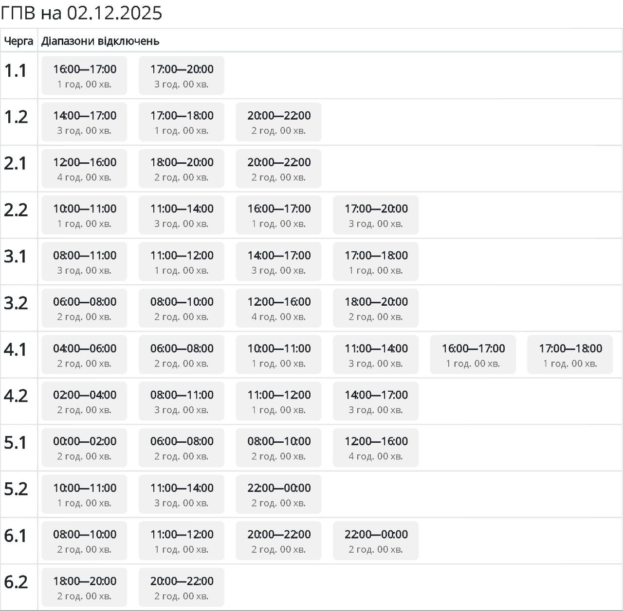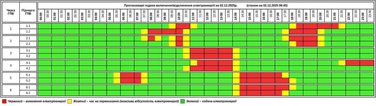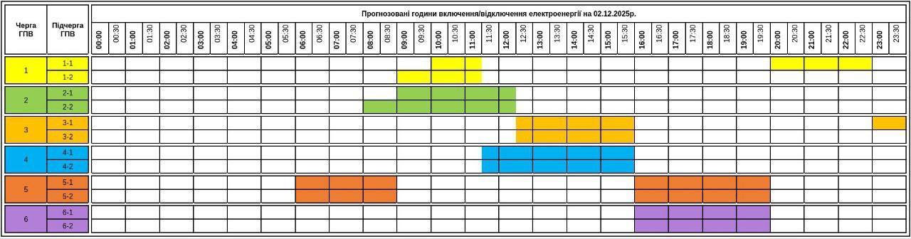 Графики отключений в Закарпатской области 2 декабря