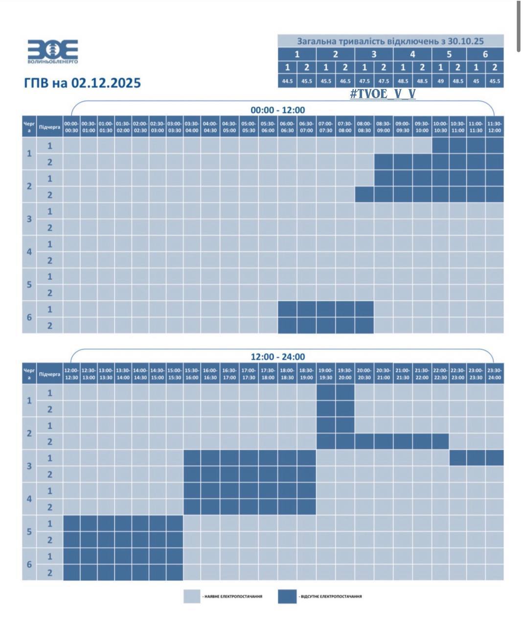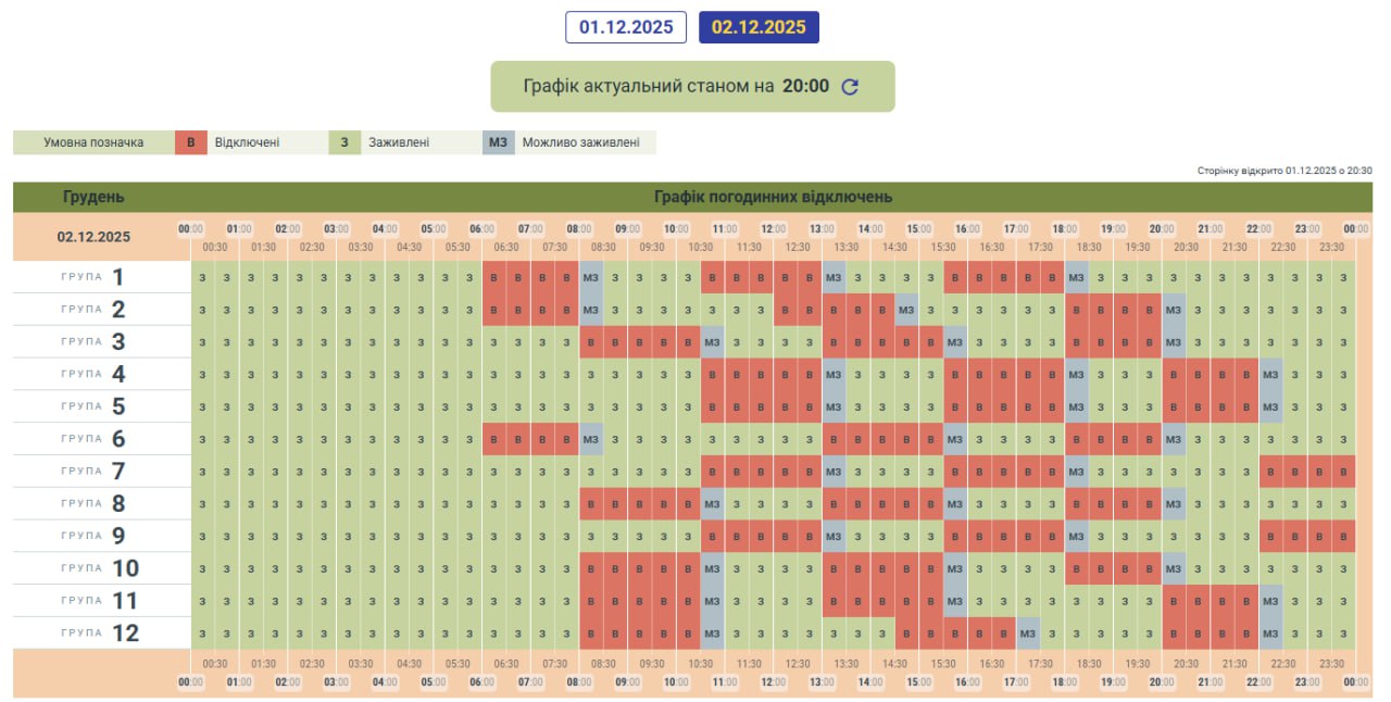 Графики отключений в Волынской области 2 декабря