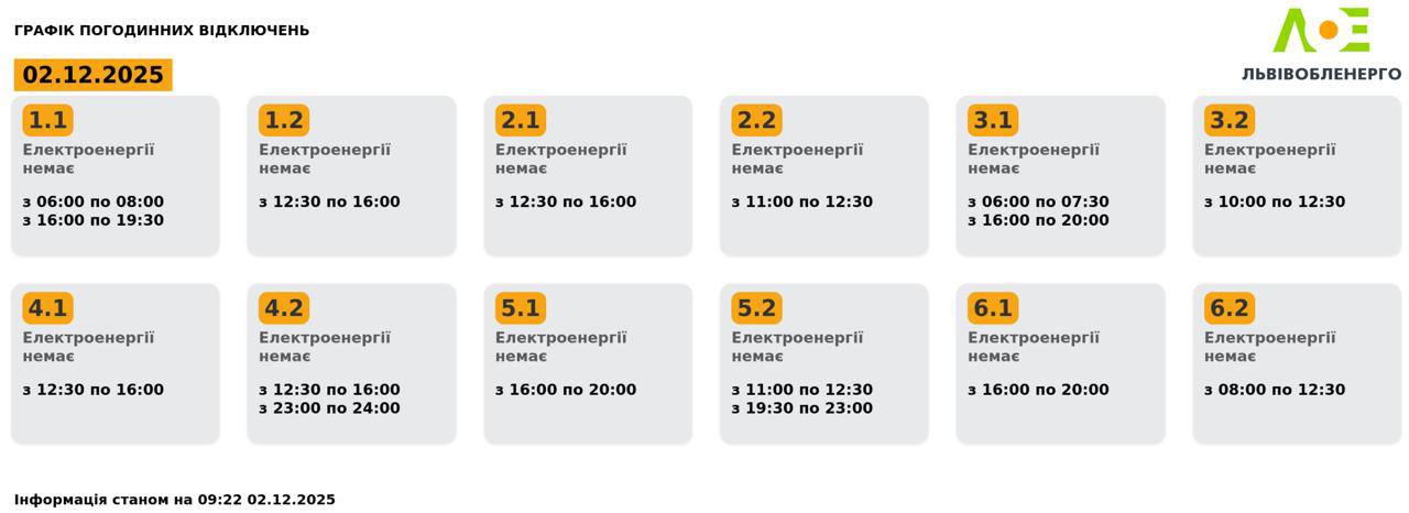 Графики отключений во Львовской области 2 декабря