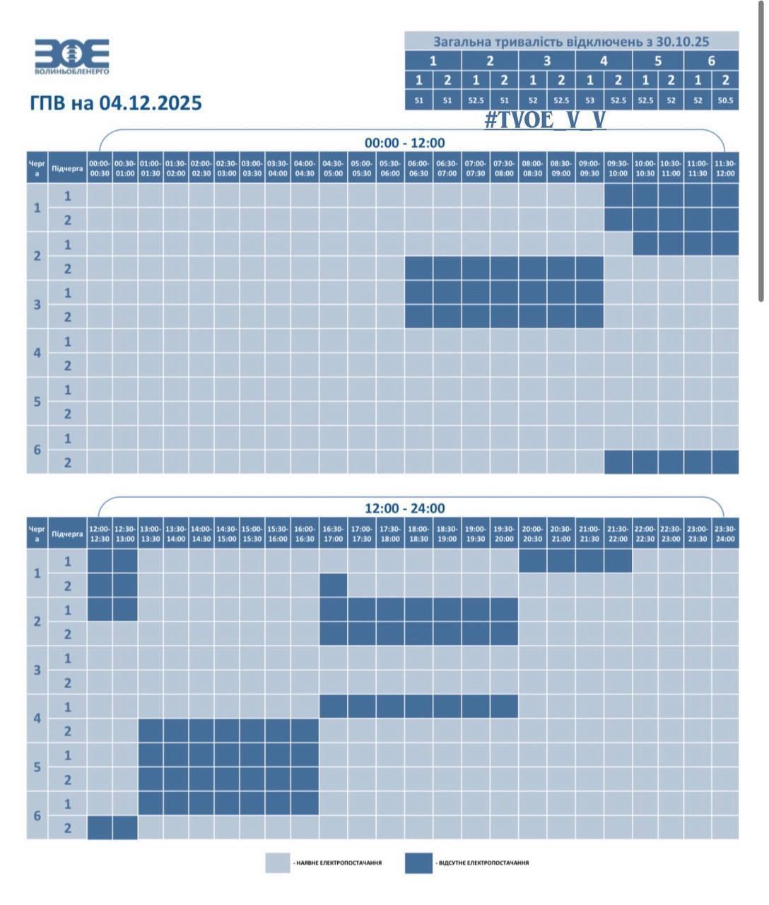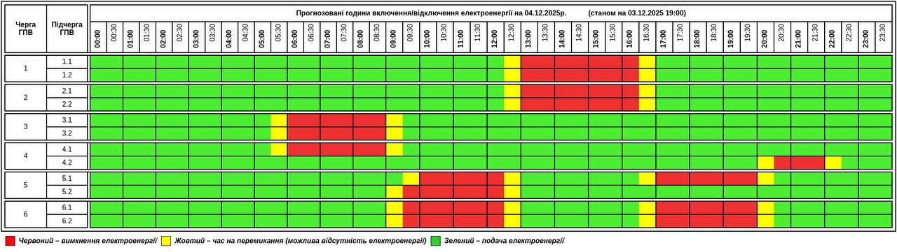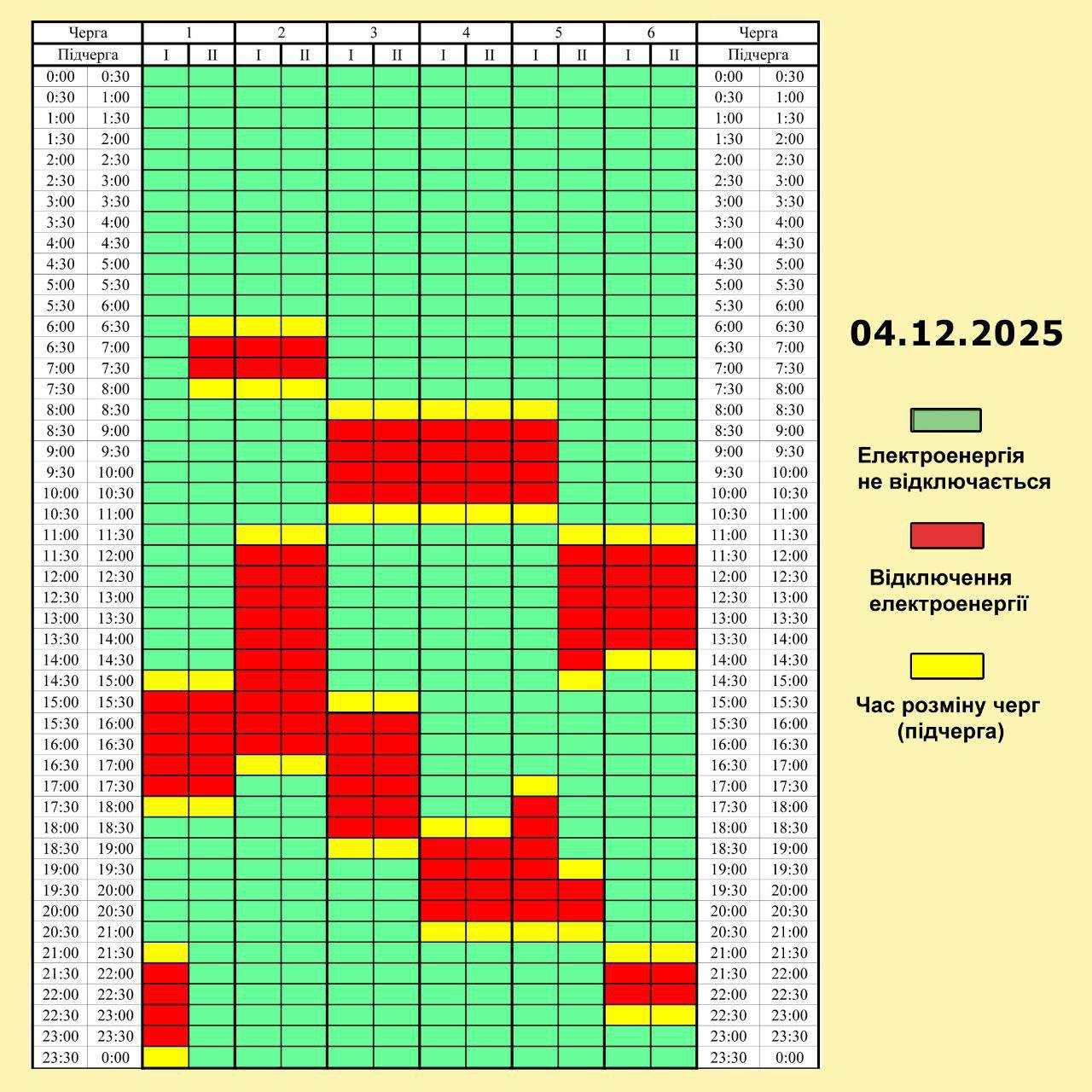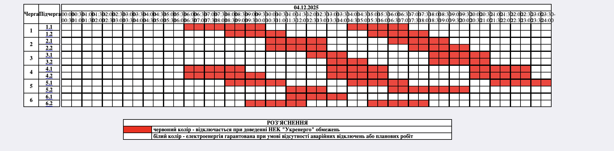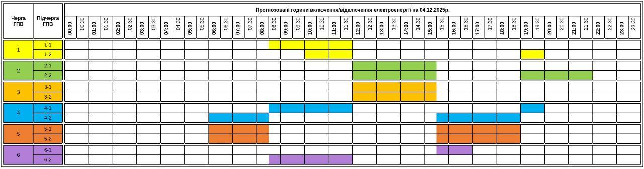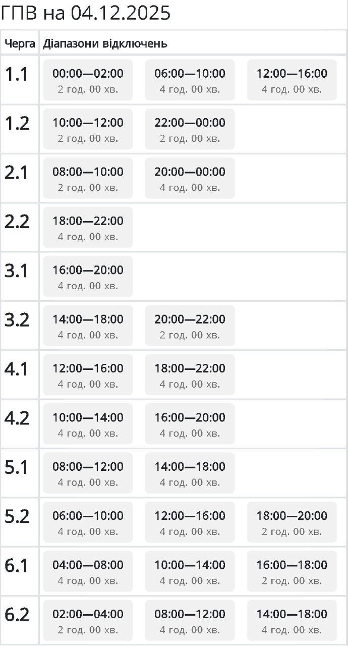 Украинцы уже несколько недель вынуждены жить в условиях постоянных отключений света из-за российских атак на энергетику. Так что в четверг, 4 декабря, в течение суток в стране будет действовать сразу от 0,5 до 3 очередей отключения, сообщает "Укрэнерго"