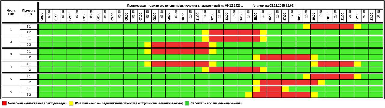 Украинцы уже несколько недель вынуждены жить в условиях постоянных отключений света из-за российских атак на энергетику. В воскресенье, 7 декабря, в течение суток в стране будет действовать сразу от 2 до 4 очередей отключения, сообщает "Укрэнерго"