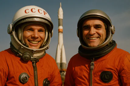 Но на этом совпадения не заканчиваются, а начинаются вполне конкретные биографические и топонимические привязки. Например, Каденюк проходил подготовку именно в Центре подготовки космонавтов им. Юрия Гагарина в Звёздном городке. (Его отобрали в группу космонавтов еще в 1976 году.) А вот еще одно странное совпадение: в 2023 году в Киеве в рамках дерусификации проспект Юрия Гагарина переименовали в проспект Леонида Каденюка. Казалось бы, логично. Но из-за этого в картах, объявлениях и справочниках часто фигурирует двойное название "Каденюка (Гагаріна)". Опять два первых космонавта оказались связаны.