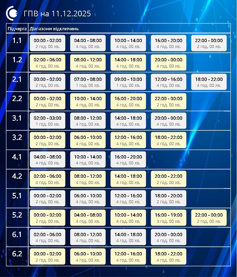Света не будет больше 12 часов. Графики отключений на 11 декабря