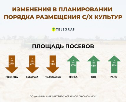 Хотя подсолнечник, кукуруза и пшеница в дальнейшем формируют основу отечественного агропромышленного комплекса, за последние годы структура посевов уже претерпела изменения. Площадь под традиционными культурами сократилась примерно на пятую часть, а именно на 27% меньше стало посевов пшеницы, на 21% – кукурузы, на 18% – подсолнечника.