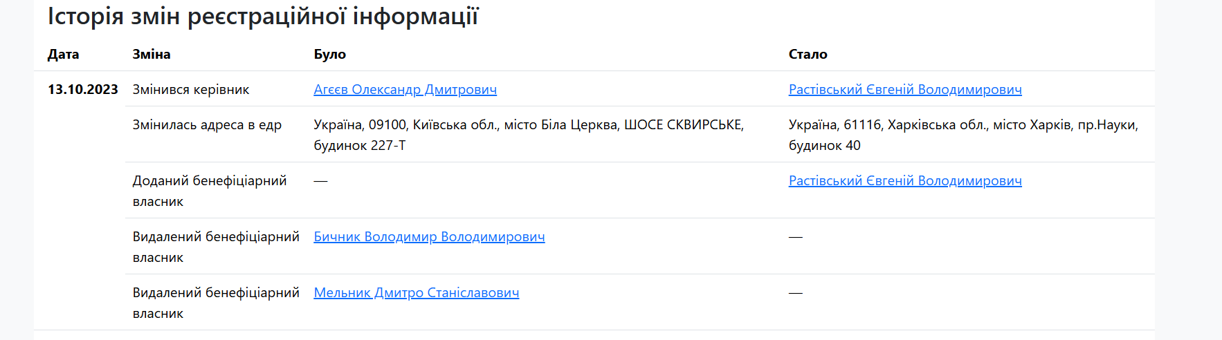 Однако Растовского используют не только чтобы повесить на него балласт. В 2023 году Евгений якобы внес 7 млн грн в уставный капитал агрофирмы "Калма Трейд" и стал единственным владельцем этой компании.