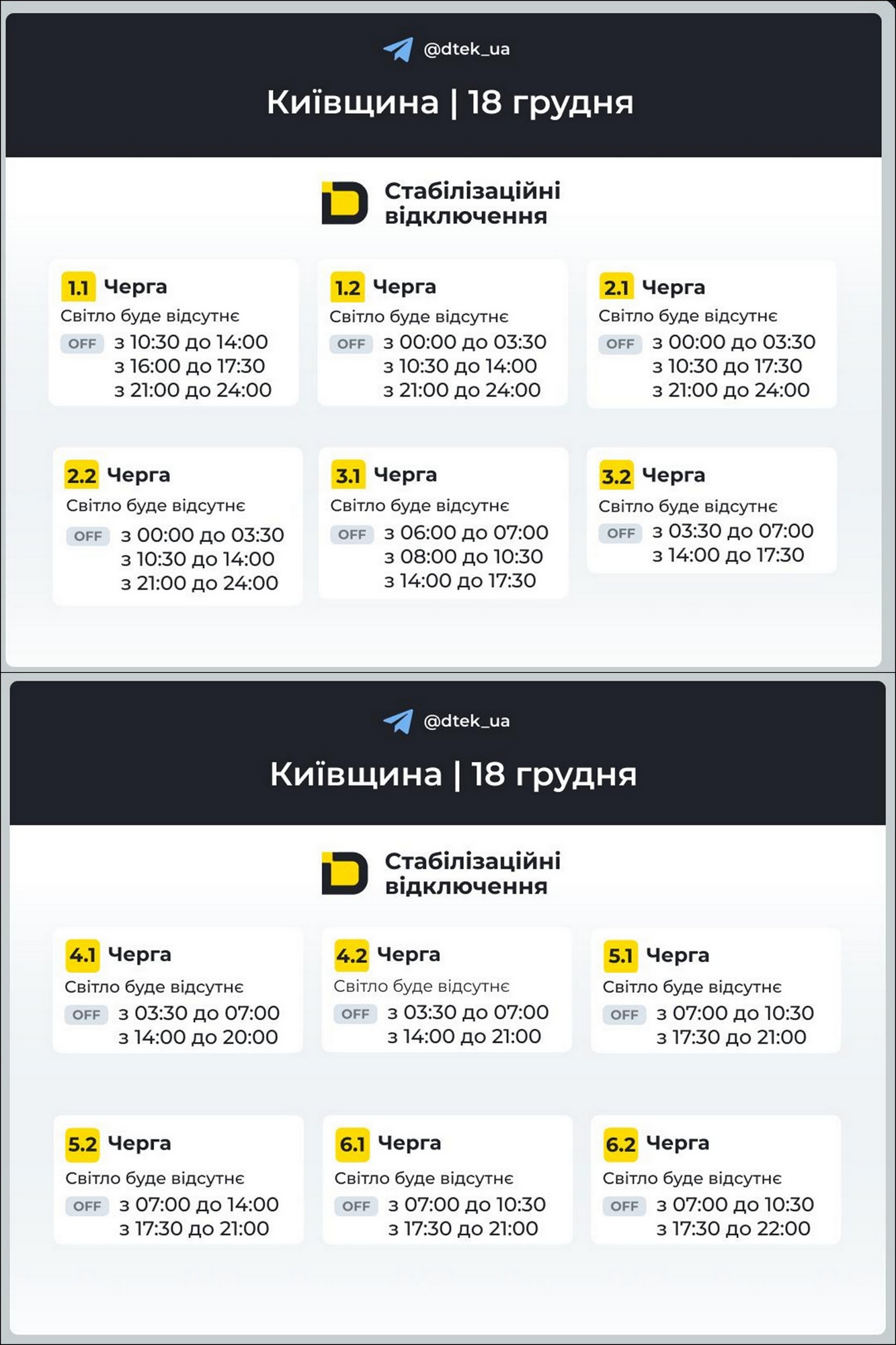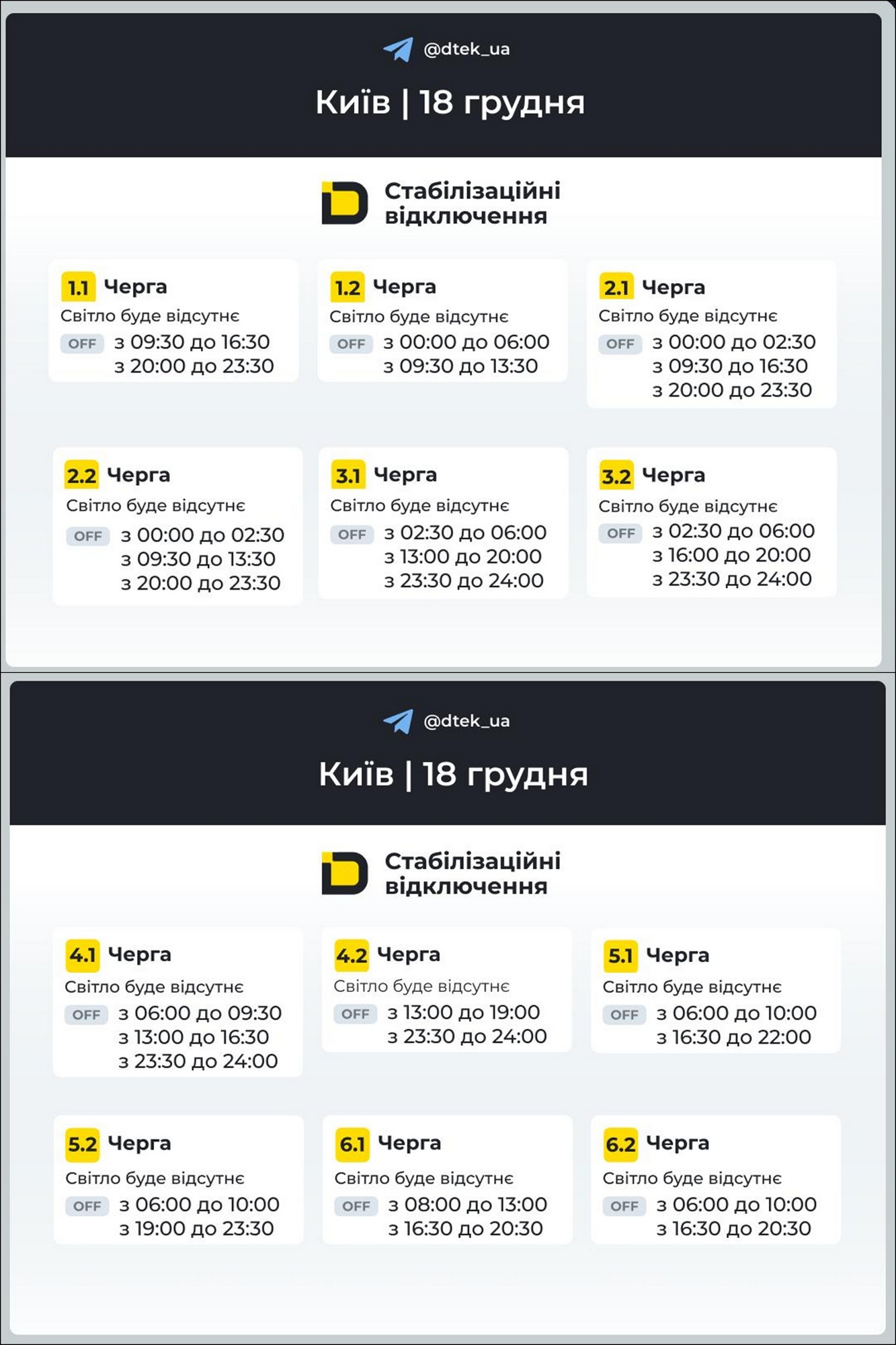 До пяти отключений в сутки. Какие графики действуют во всех регионах Украины 18 декабря