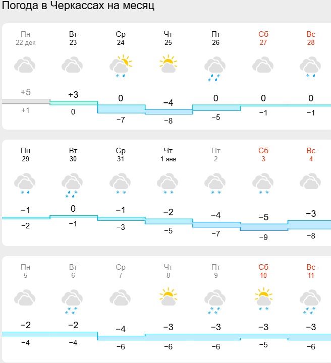 Так, по данным синоптиков с meteofor, с 1 по 4 января в Черкасской области ожидаются морозы. Температура воздуха может опустится до -5-9 градусов. Также в эти дни могут выпасть осадки в виде небольшого снега.