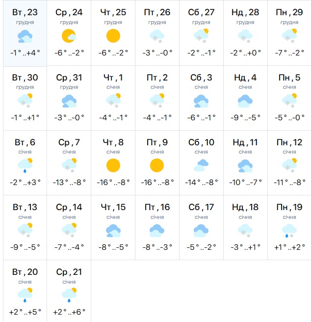 "Самыми холодными станут 25 и 26 декабря и предновогодние дни с 29 по 31 декабря. Кроме того, рассеется пасмурность, которая покрывала Украину почти весь декабрь", — сказал Кибальчич.
