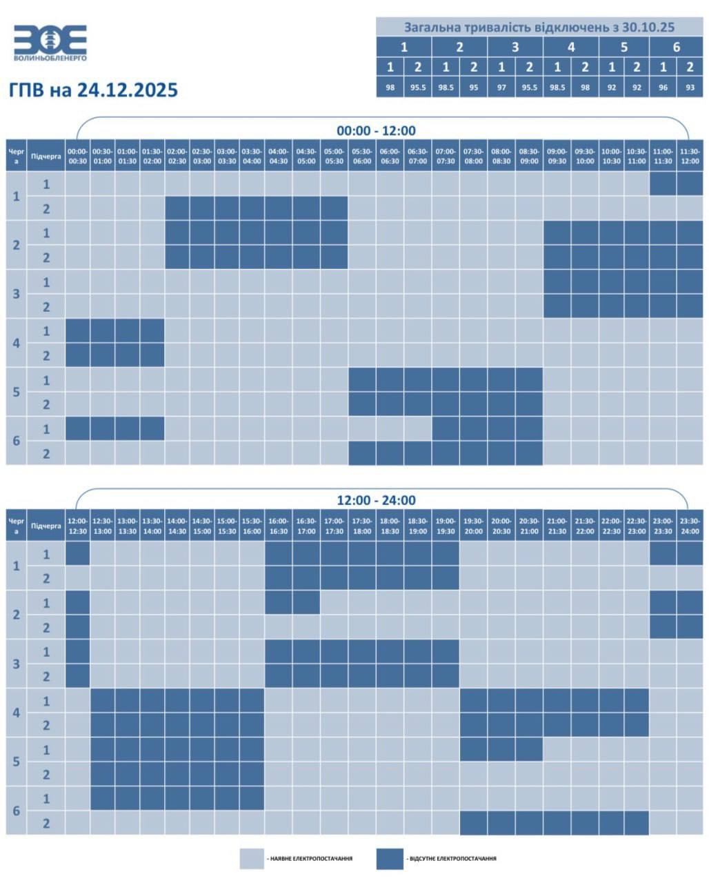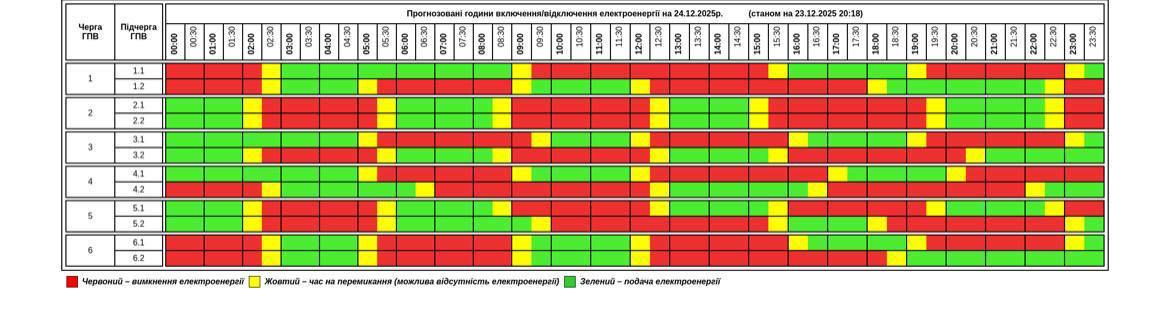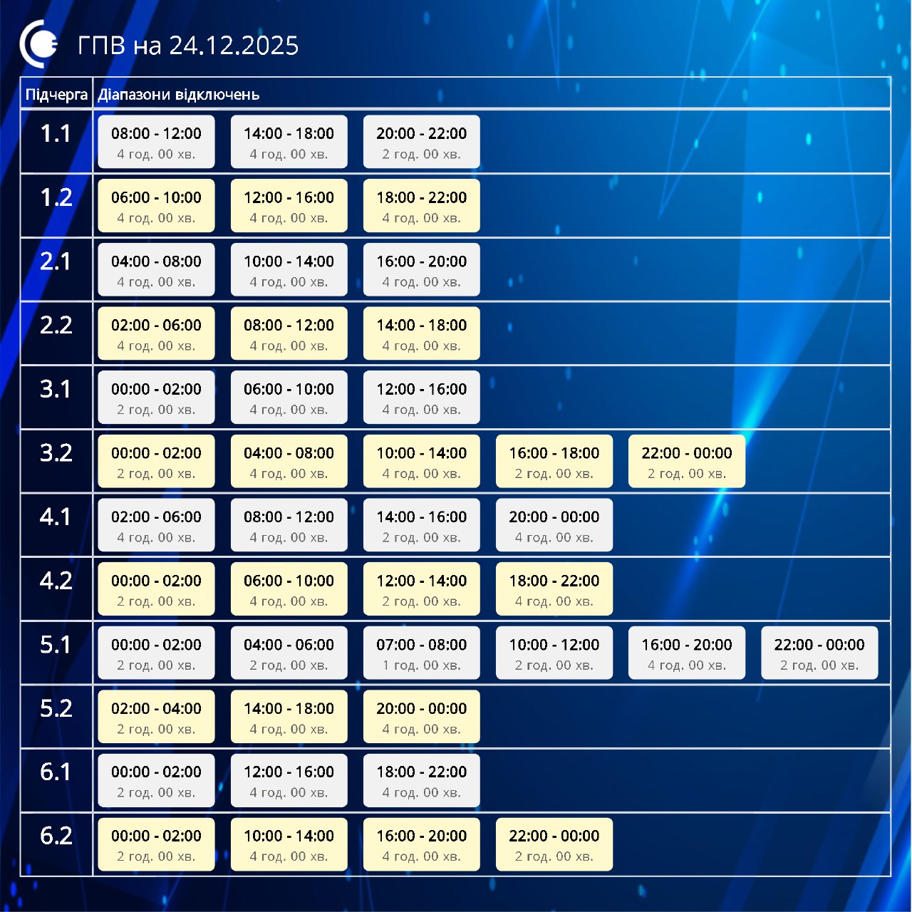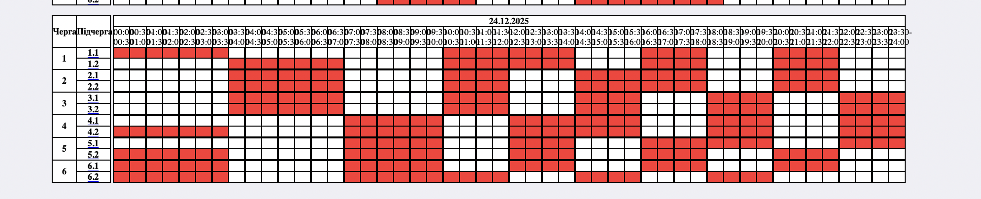 - 6.1: 01:30 – 06:30, 10:30 – 15:30, 19:30 – 24:00