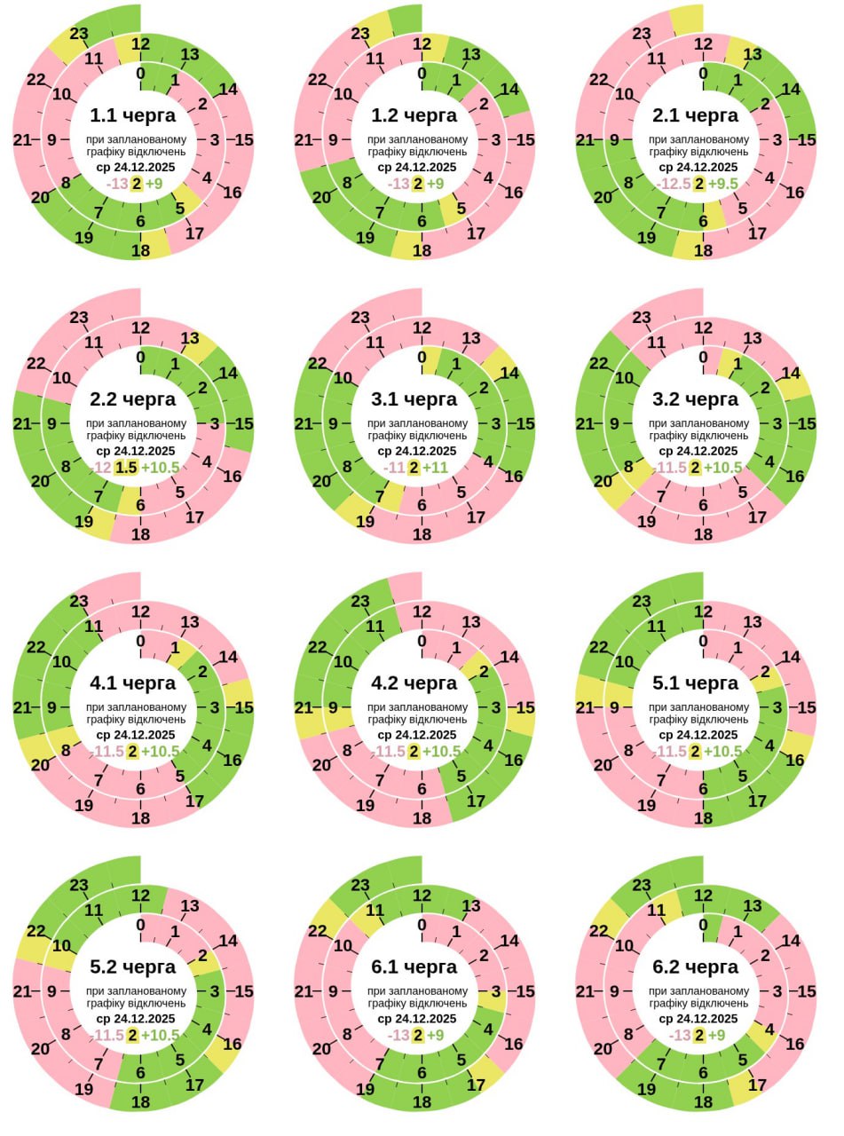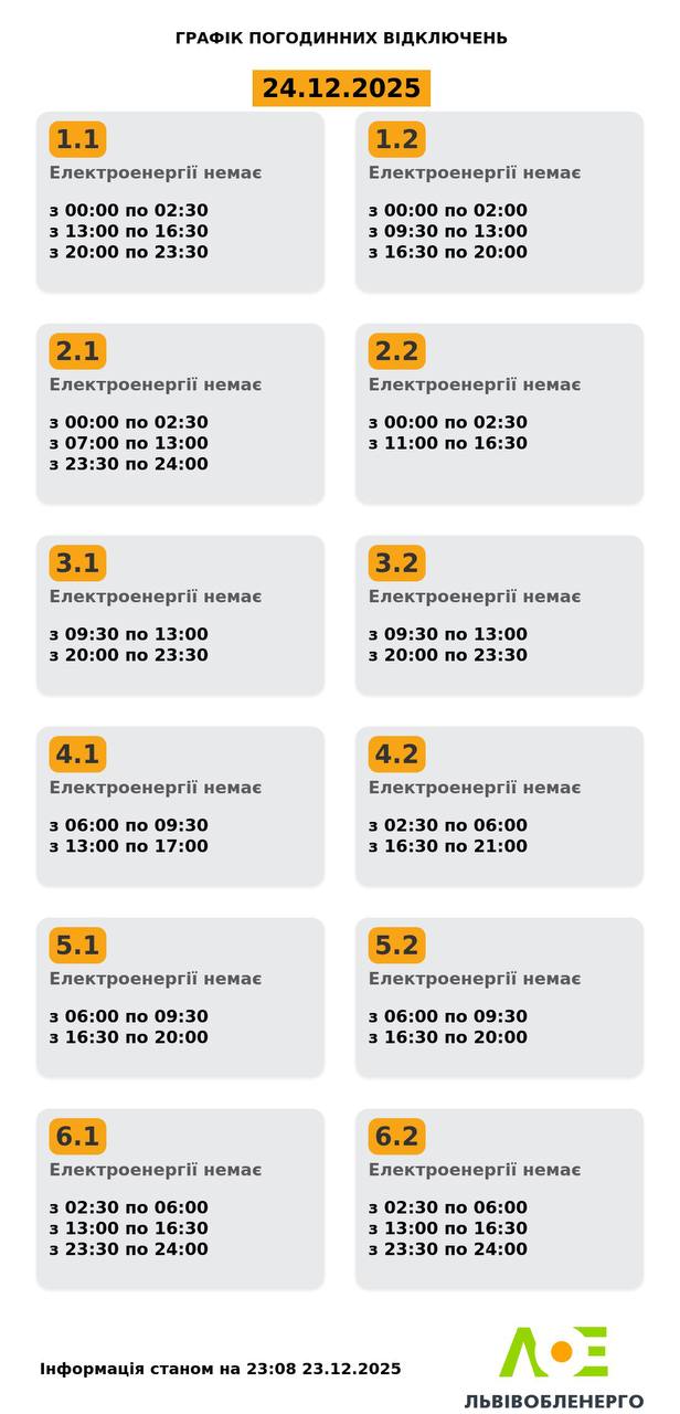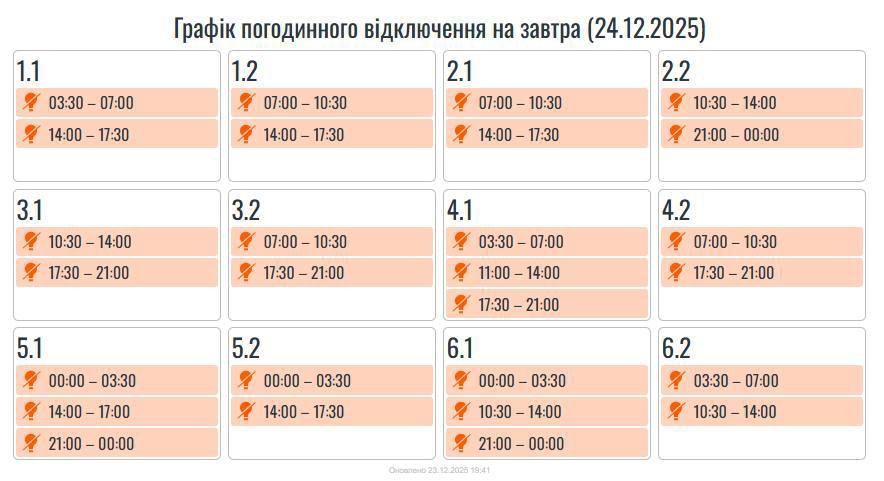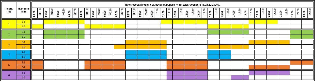 Из-за энергетического террора России украинцы вынуждены жить в условиях постоянных отключений света. Поэтому в среду, 24 декабря, отключения продолжатся в большинстве регионов Украины, сообщает "Укрэнерго".
