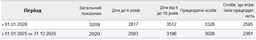 Согласно закону "О государственном бюджете на 2026 год" с 1 января 2026 года прожиточный минимум для трудоспособных лиц увеличится до 3 328 гривен. Сейчас он составляет 3028 гривен.