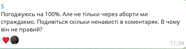 - "Соглашаюсь на 100%. Но не только из-за абортов мы страдаем"