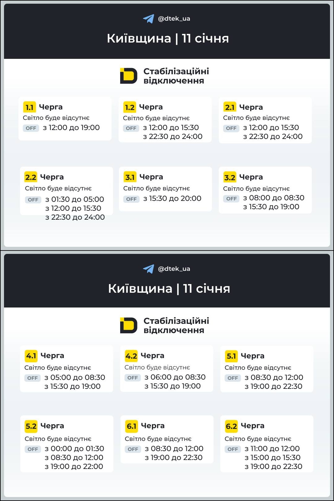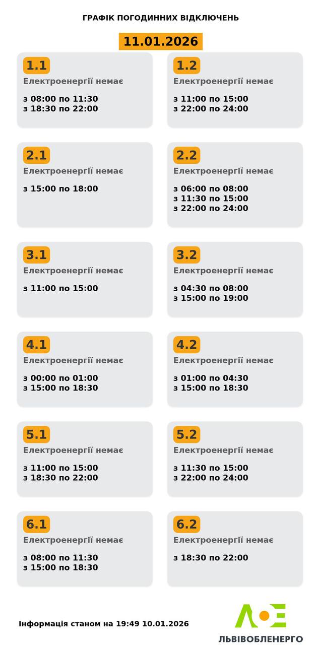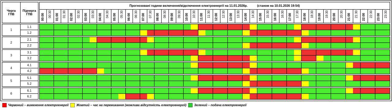 Из-за энергетического террора России украинцы вынуждены жить в условиях постоянных отключений света. Поэтому в воскресенье, 11 января, в течение всего дня в стране будут отключения электричества для бытовых потребителей, сообщает "Укрэнерго".