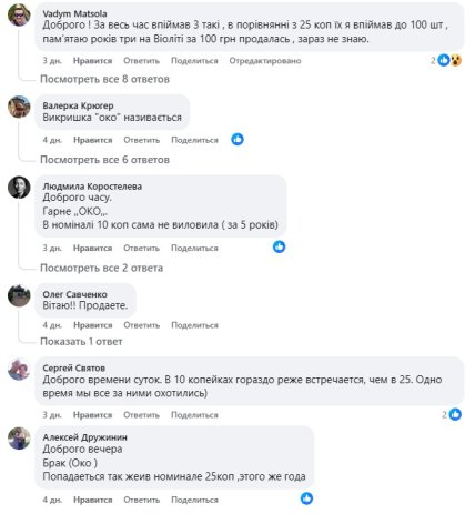 Комментаторы под постом владельца опознали данный брак и утверждают, что он называется "глаз". Некоторые коллекционеры даже охотились в свое время за такими, а несколько лет назад одну такую монетку можно было продать за 100 гривен.