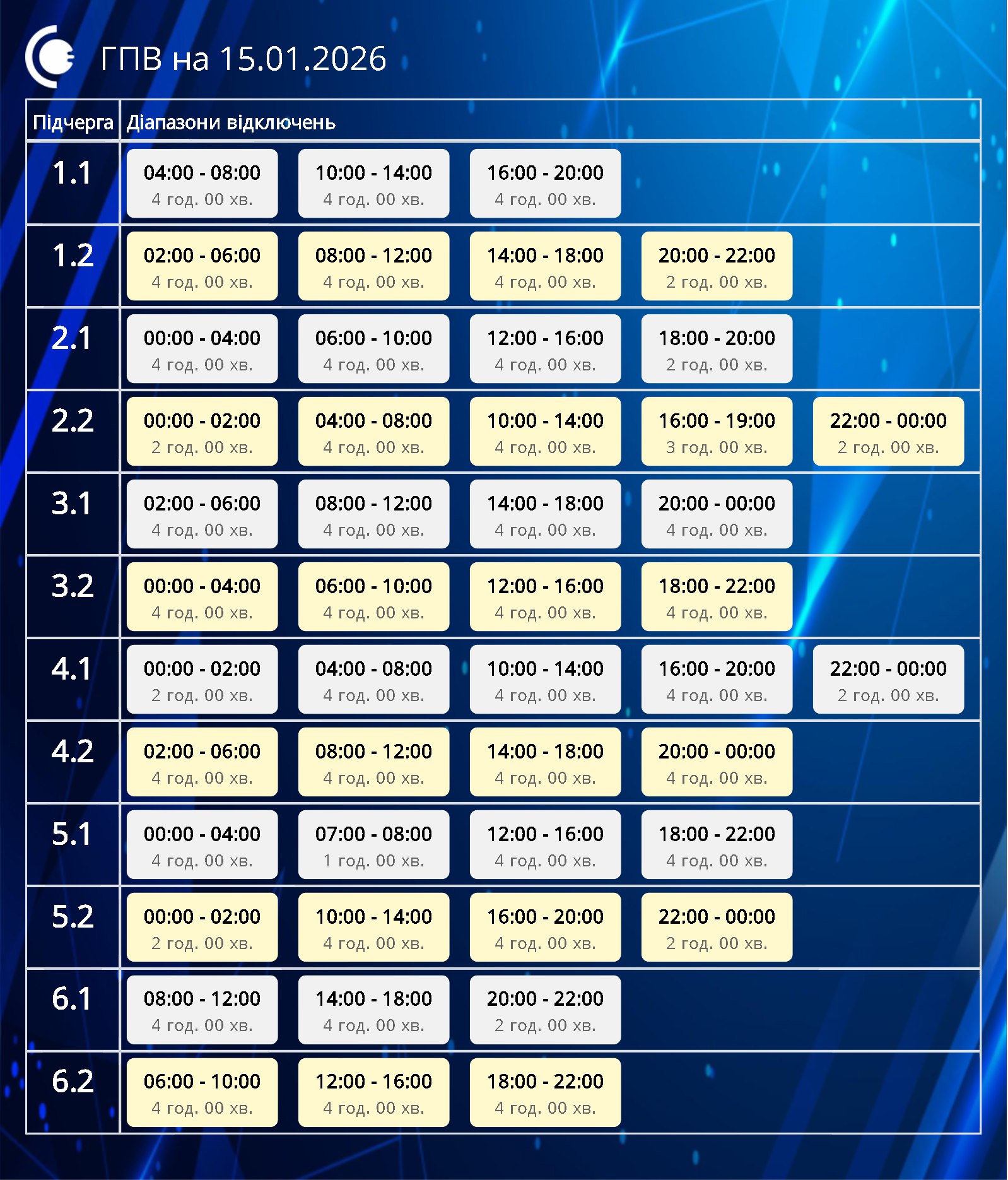 Более 12 часов без света. Графики отключений на 15 января