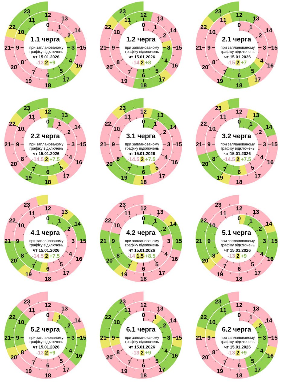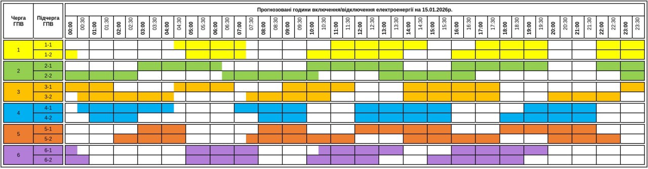 Из-за энергетического террора России украинцы вынуждены жить в условиях постоянных отключений света. В четверг, 15 января, в течение всего дня в стране будут отключения электричества для бытовых потребителей, сообщает "Укрэнерго".