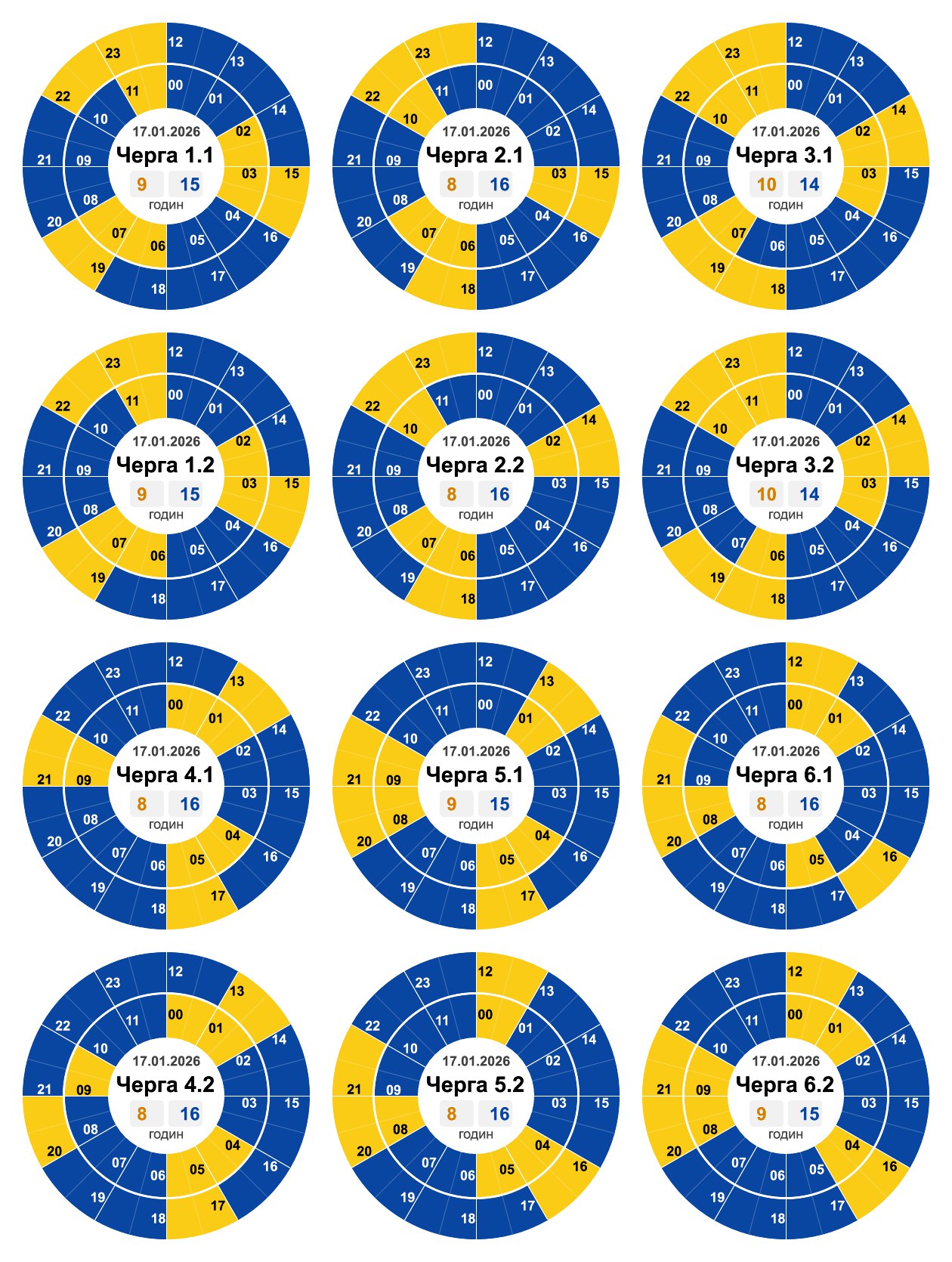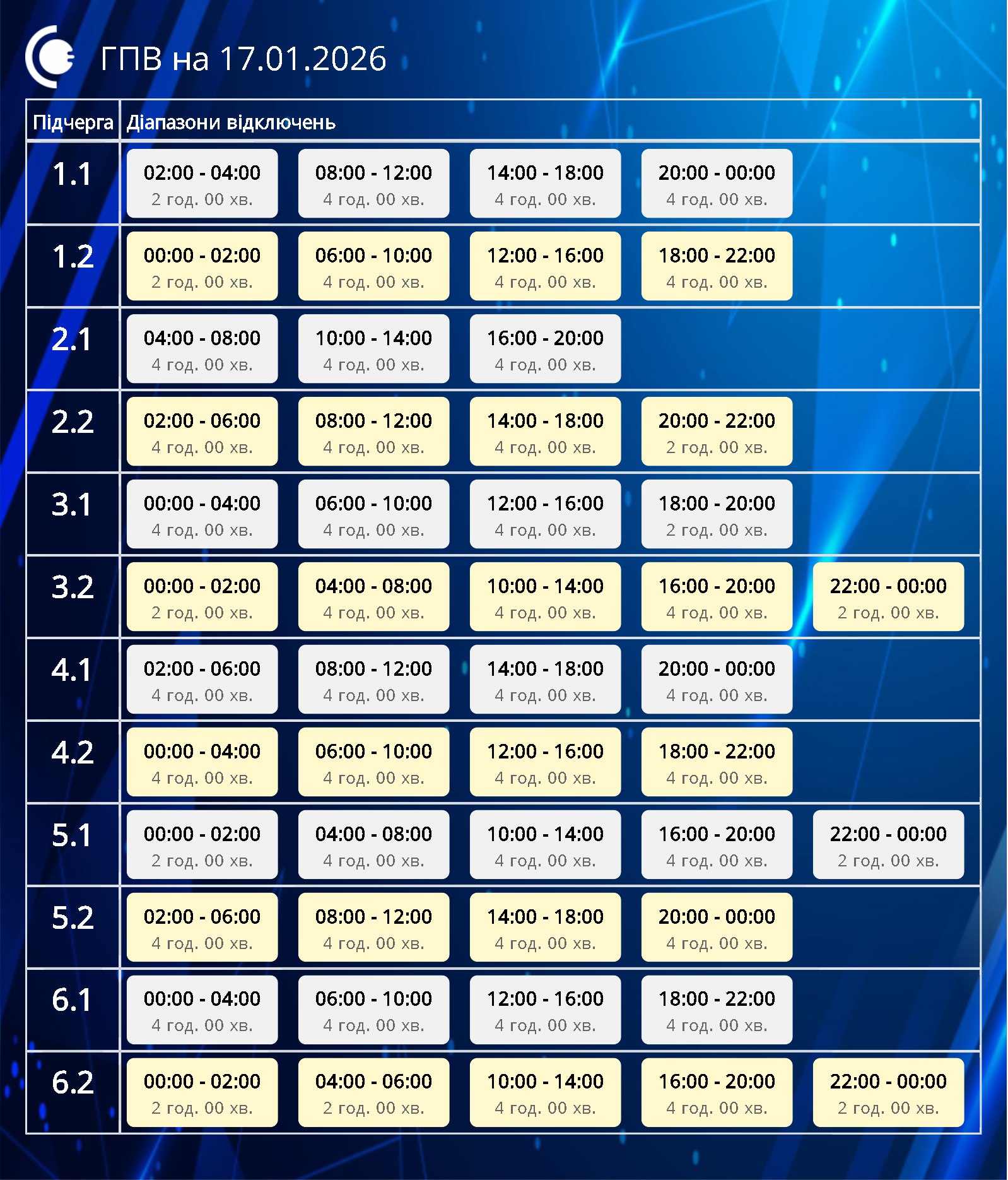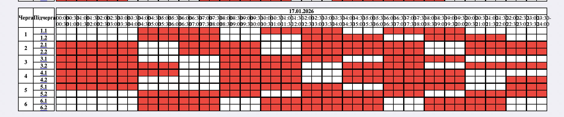 Графики отключений в Черновицкой области 17 января